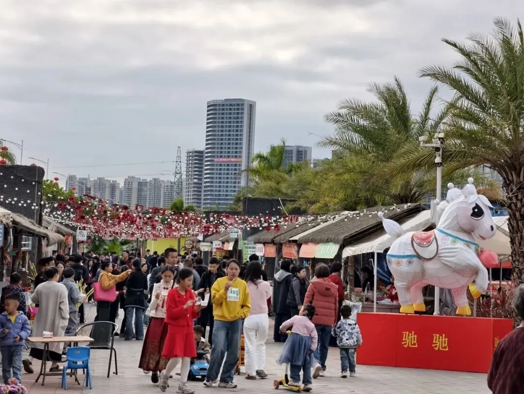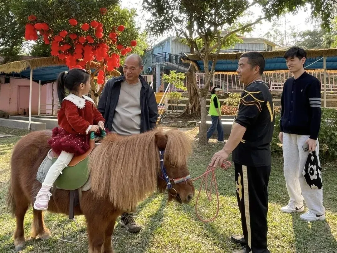 东源县积极引入新业态、新场景,丰富乡村文旅产品体系。春节期间禾沐萌宠乐园全新开业,引入羊驼、矮马等多种萌宠,设置互动投喂、萌宠表演等体验项目,丰富东源亲子主题乐园市场,成为家庭出游新热点,累计吸引游客超万人次。顺天镇“马上有喜柿”跨年市集以“温情团圆”为核心,精心打造山地体验区、风筝活动区等四大特色活动区,非遗表演、互动游戏轮番上演,满足各大年龄段游玩需求,吸引超4万人次沉浸式感受乡村年味,市集现场人头攒动、氛围热烈。