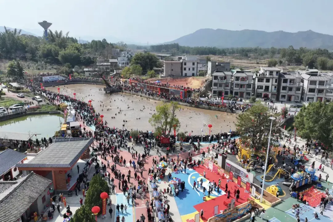 春节期间,东源各乡镇深挖本土民俗资源,推出系列年味浓郁的非遗展演活动。蓝口镇蓝口围村传承300余年的龙舞热闹开演,村民手持巨龙穿街过巷,家家户户燃放鞭炮迎龙,祈愿风调雨顺。漳溪畲族乡中联村省级非遗“汶水塘捕鱼节”火热开捕,瑞狮环塘祈福、畲族鱼灯巡游、300余人跃水捕鱼、万鱼跃塘等壮观场面吸引2万名游客共赴民俗盛宴。各类民俗活动覆盖多个乡镇,传统年味弥漫东源城乡。