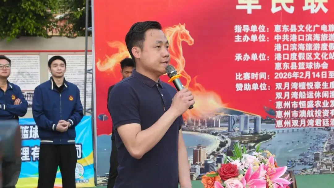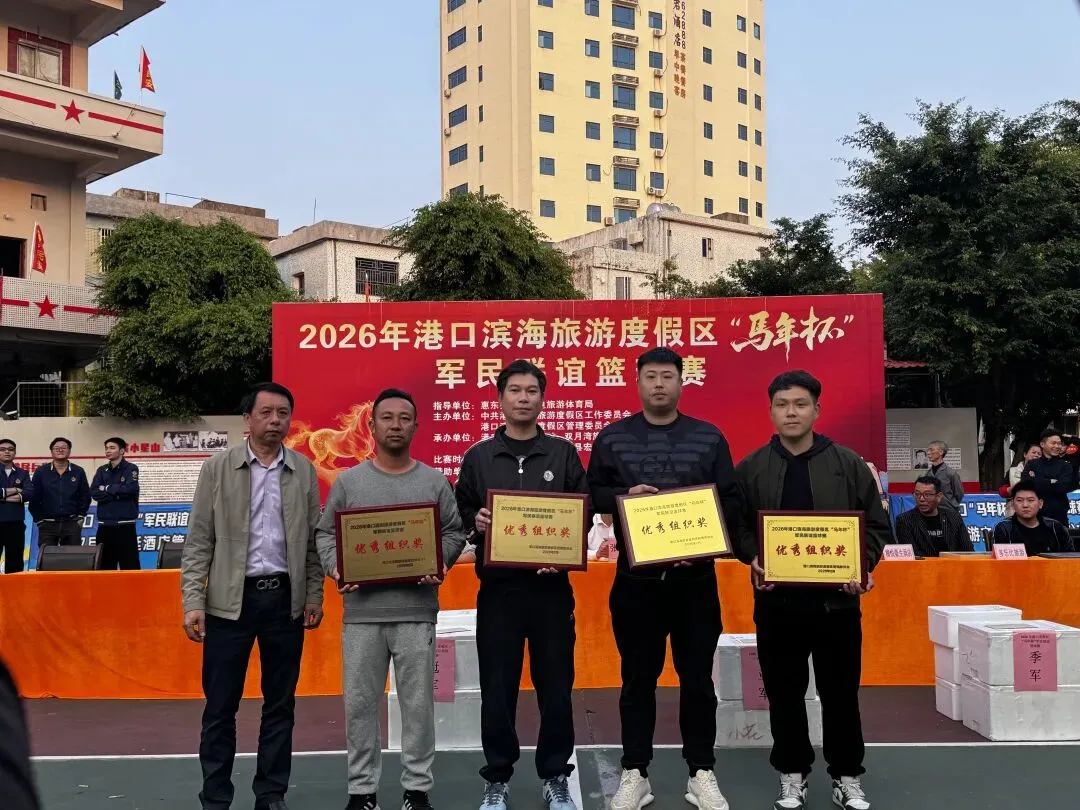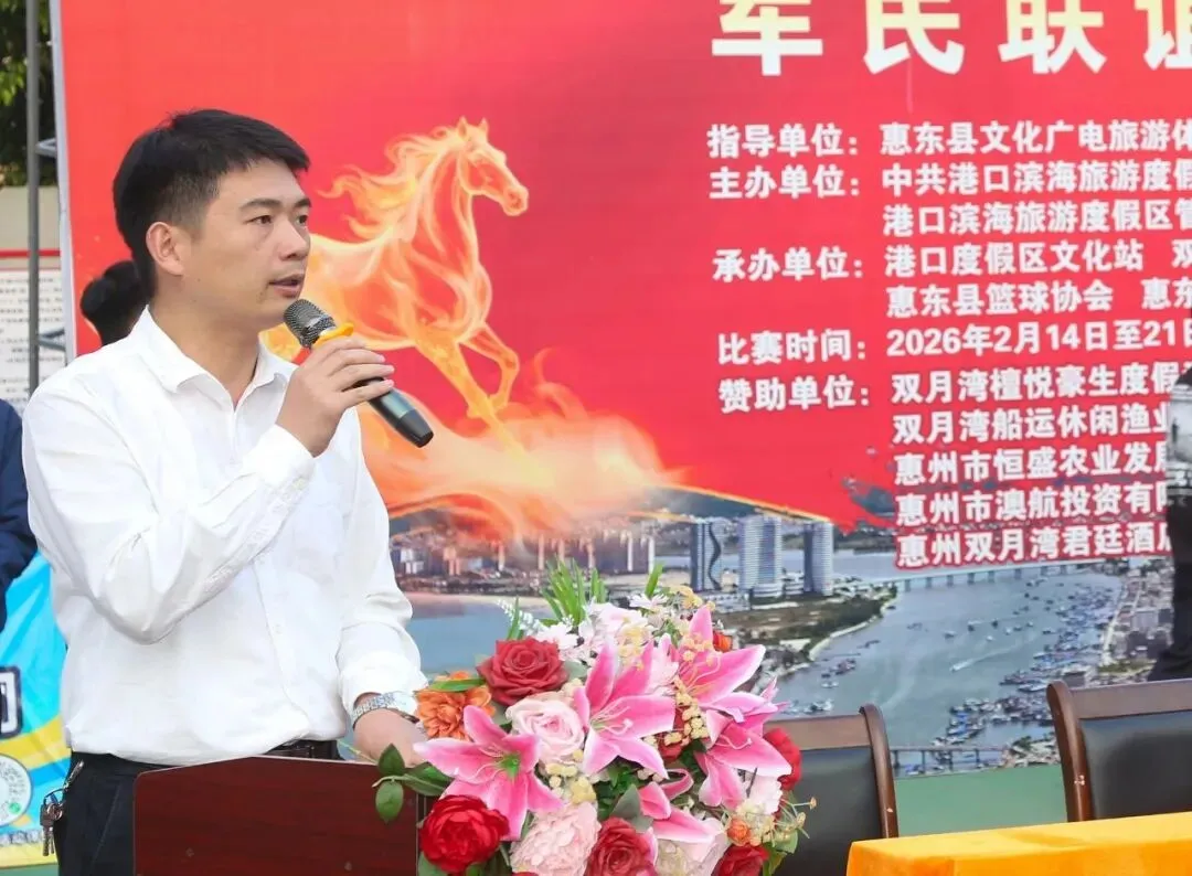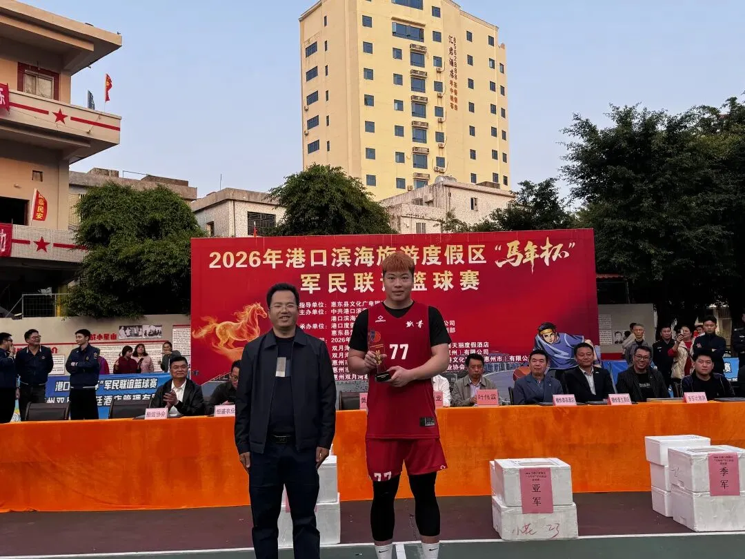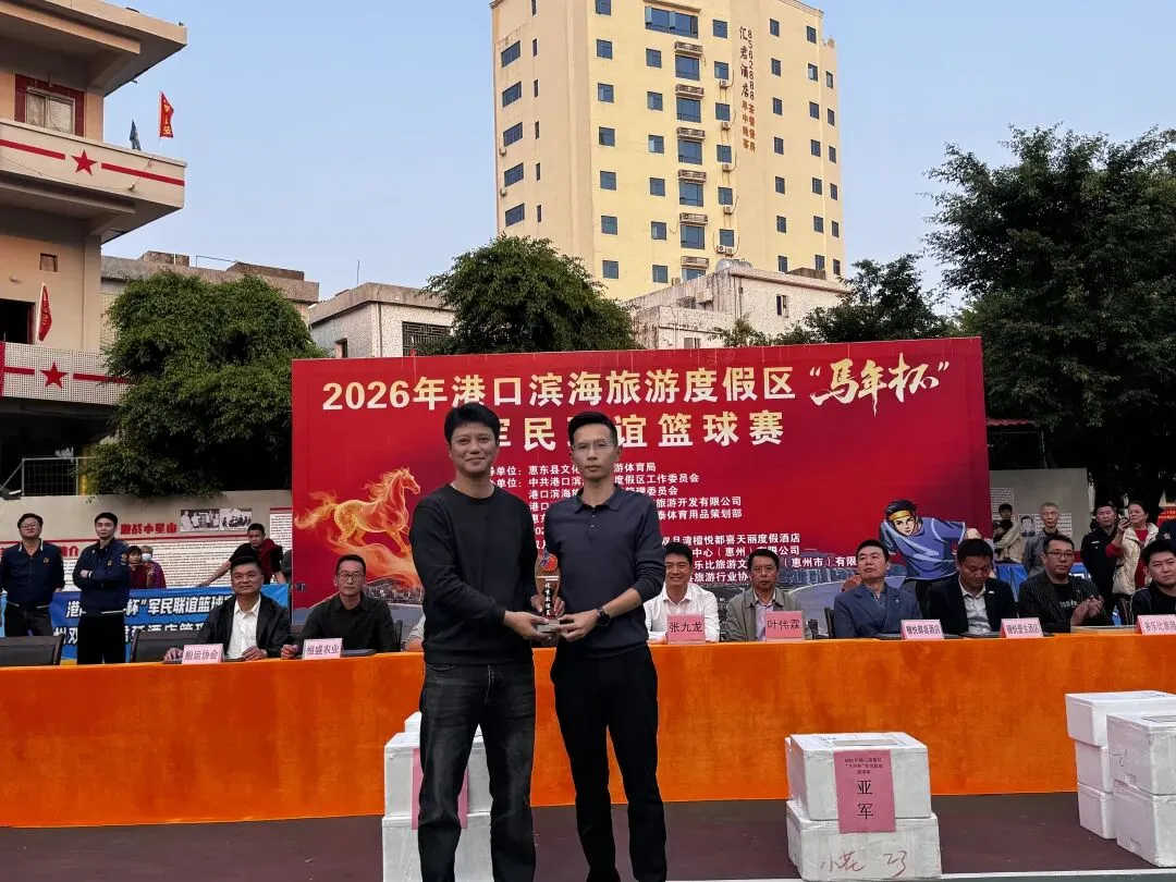 由中共港口滨海旅游度假区工作委员会,港口滨海旅游度假区管理委员会主办,惠东县篮球协会承办的2026年港口滨海旅游度假区马年杯军民联谊篮球赛,经过7天共23场的激烈角逐,于2月21日大年初五在港口英雄民兵连红军小学圆满闭幕! 出席闭幕式的领导与嘉宾 赛场上激情迸发