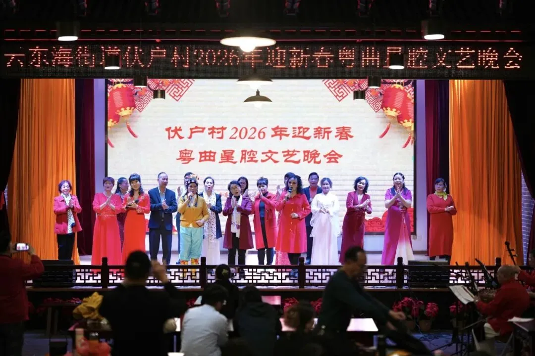 除了核心景区,辖区各处也组织了丰富多彩的迎春活动。伏户村委“2026年迎新春粤曲星腔文艺晚会”精彩演绎,非遗村晚连续六年唱响云东海。