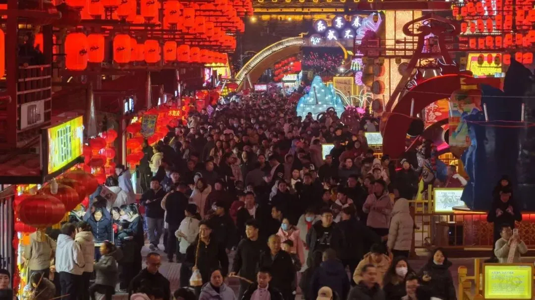 步入不夜城,璀璨灯火与古风建筑交相辉映,各式主题花灯流光溢彩,将街区装点成梦幻般的世界。民俗演艺、古风巡游、特色展演轮番登场,精彩的节目引得游客驻足围观、掌声不断。美食街区香气扑鼻,各类特色小吃、网红美食琳琅满目,满足游客味蕾体验。游客们或携家带口漫步赏灯,或身着汉服拍照留念,或驻足品尝特色美食,欢声笑语此起彼伏,尽情享受着新春出游的快乐,玩得不亦乐乎。