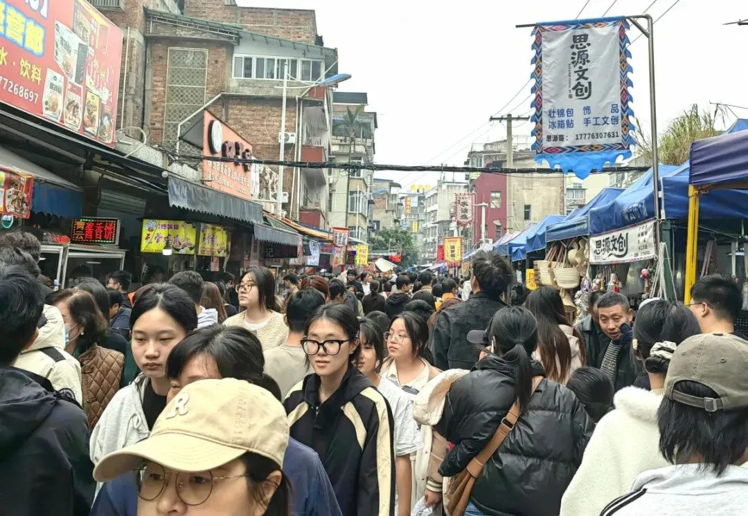 各网红螺蛳粉店门口大排长龙,一眼望不到头,热乎的年味从街头漫到巷尾。