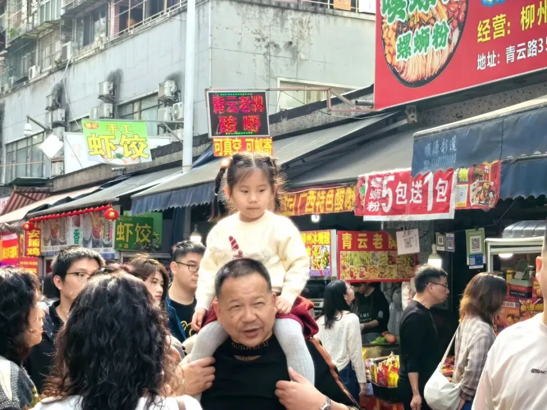柳州的青云菜市、螺蛳粉店等网红打卡点吸引外地游客前来品尝打卡。