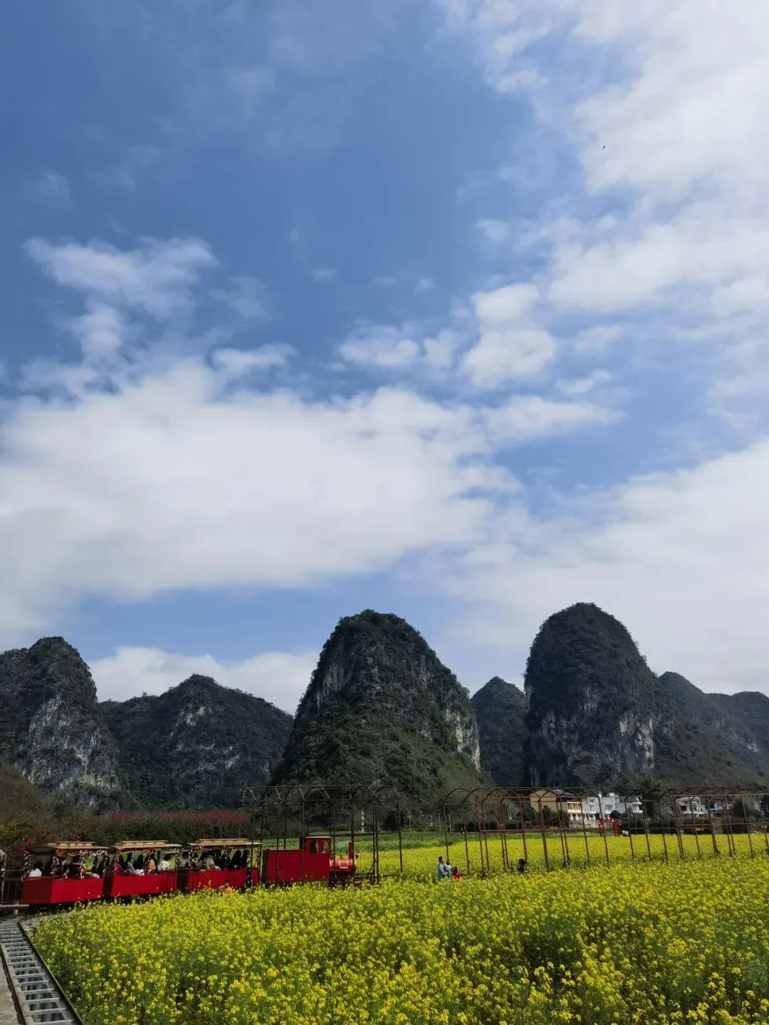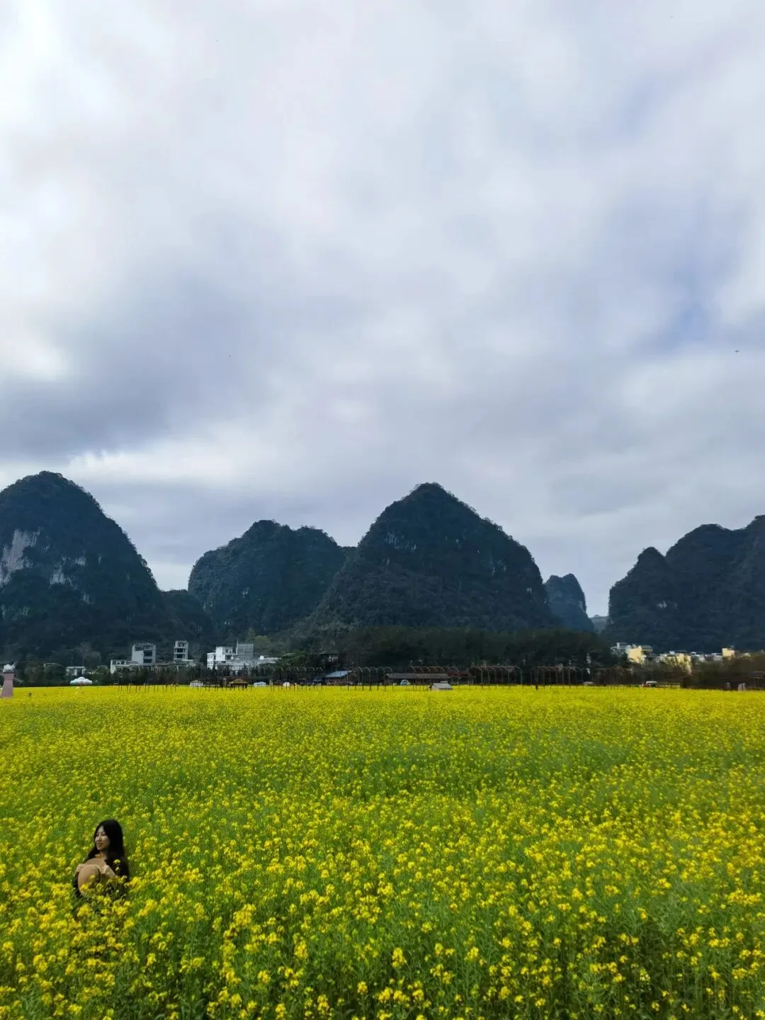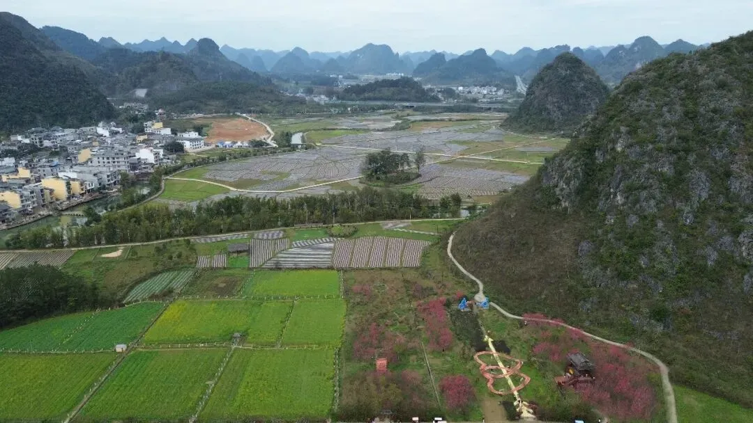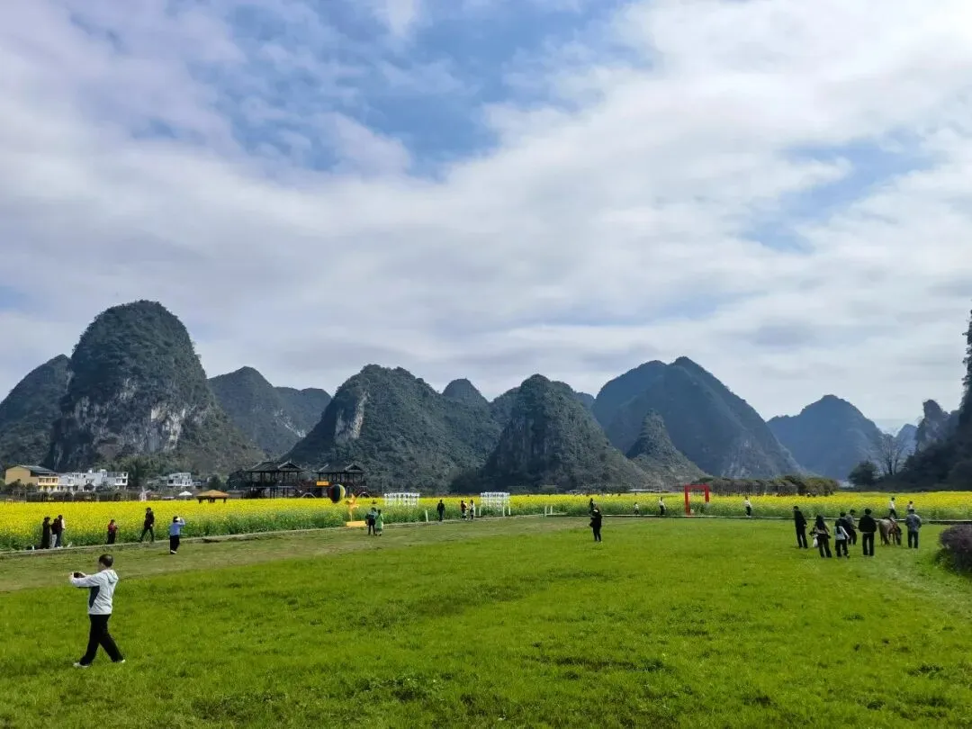每当暮色渐浓时, 峰林、稻田与花海会染上一层橘金色, 炊烟升起,田园归于静谧, 晚风里带着泥土与淡淡的花香, 这是山水、花海与烟火交织的暖冬秘境。 这里值得一去, 我已经来了,你也可以准备启程了。 注意事项: ⌛旧州慢慢逛1.5~2 小时足够,不用赶。 🏞️旧州 +鹅泉(约 3 公里):一日游经典组合,自驾 / 打车 15 分钟可达。 🚗景区入口外有停车场,车位充足,收费10元,也可以停到附近路边。 🚁对无人机友好,航拍视野佳。 🚻景区里厕所不多,进景区前先解决。