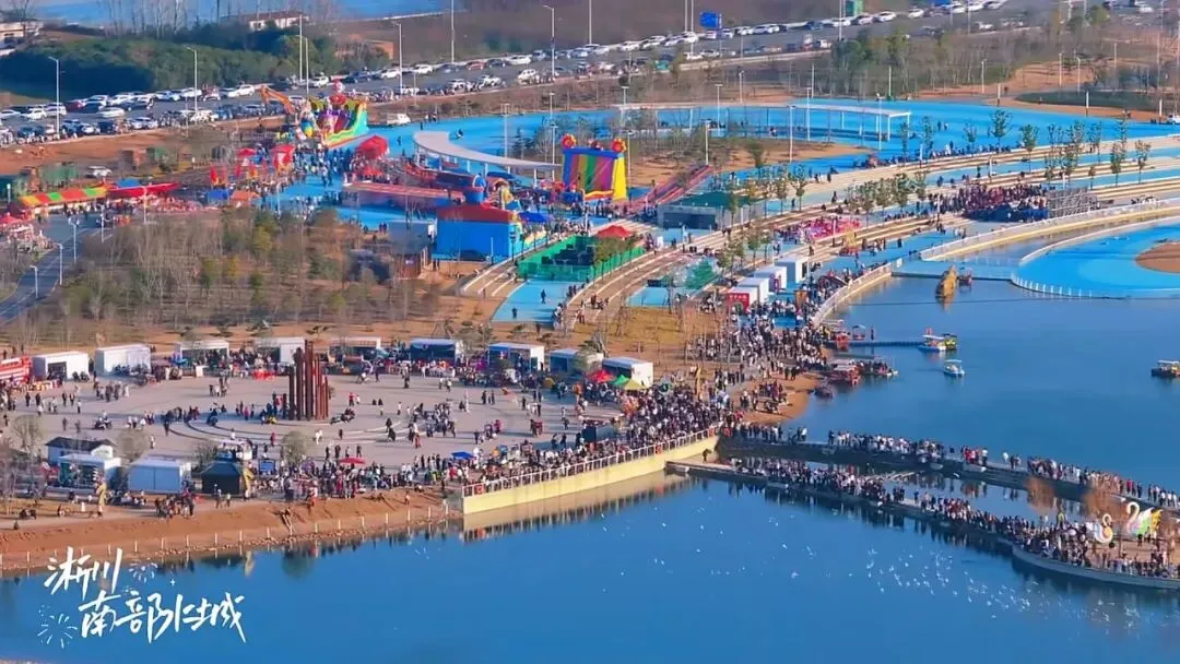 南部水城游人如织、热闹非凡。水上云梯成为热门打卡点,游客们驻足观景、与红嘴鸥互动合影,随手一拍都是大片。这里的非遗表演超精彩,民俗展演轮番上演,一系列活动让年味更浓。