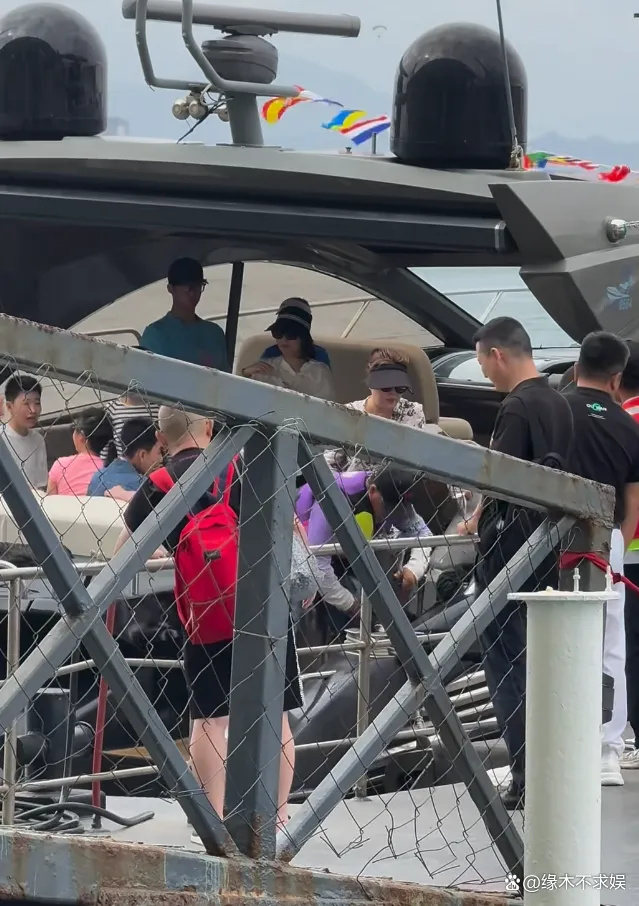 章子怡一行人下了观光车后便上船了,一大家子有十几口人。醒醒坐在位置上和其他小伙伴嬉戏打闹十分开心,章子怡则在忙活着。而章子怡侄子在一群人中是最高的,他一直站在章子怡身后,能看出两人关系非常不错。