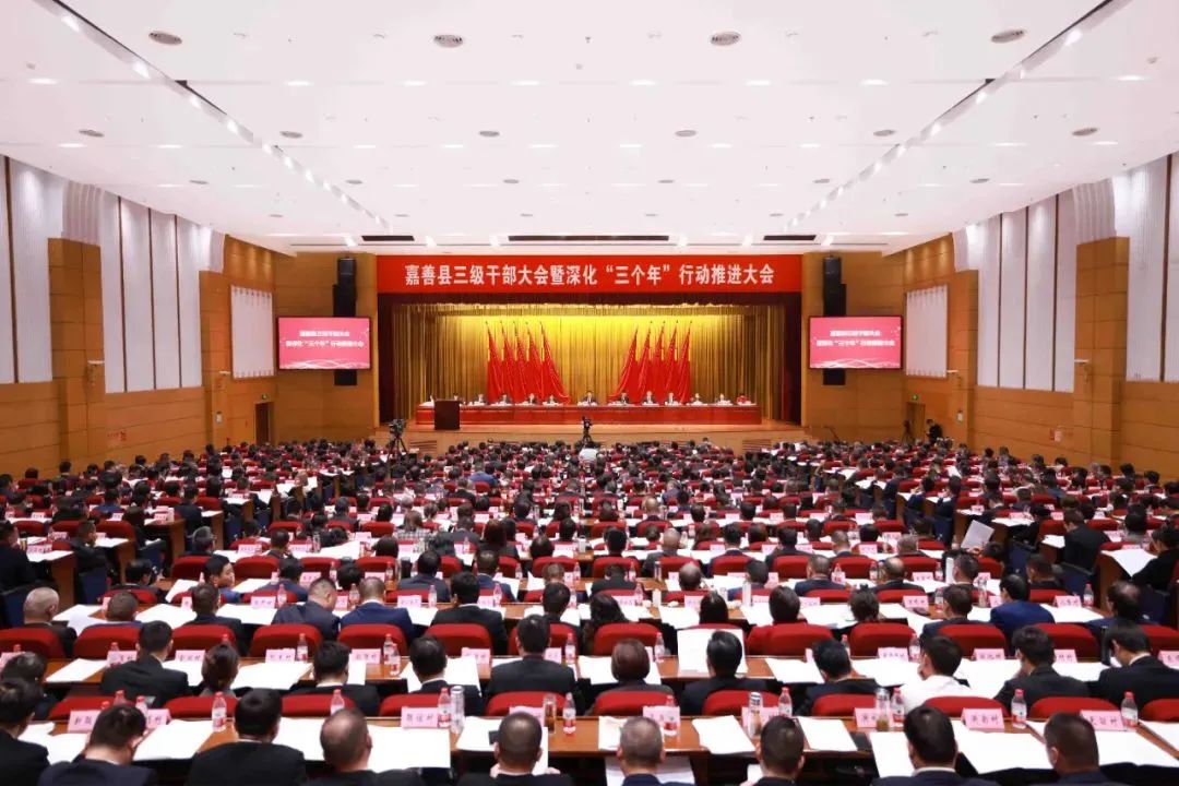 2月19日下午,嘉善县三级干部大会暨深化“三个年”行动推进大会在县会展大礼堂召开,全面吹响比拼奋战新一年的号角。市委常委、县委书记江海洋出席会议并讲话,县委副书记、县长张锡锋主持会议。
