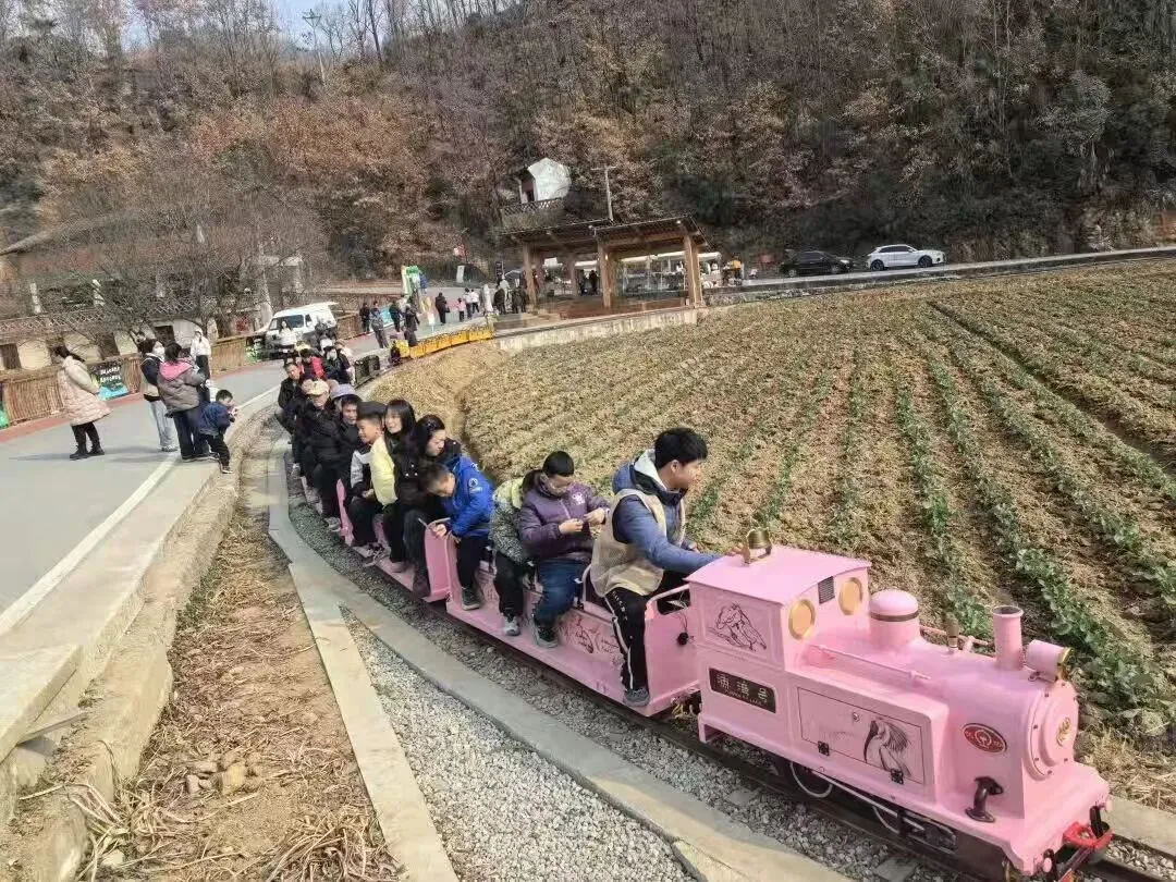 春节期间,城关镇各大景区景点游人如织,特色新业态成为吸引游客的重要亮点。渔湾逸谷景区凭借复古观光小火车成为全镇最火打卡地,小火车穿行在冬日田园之间,沿途风光尽收眼底,景区日均接待量持续攀升,迅速走红社交平台,成为名副其实的“流量担当”。