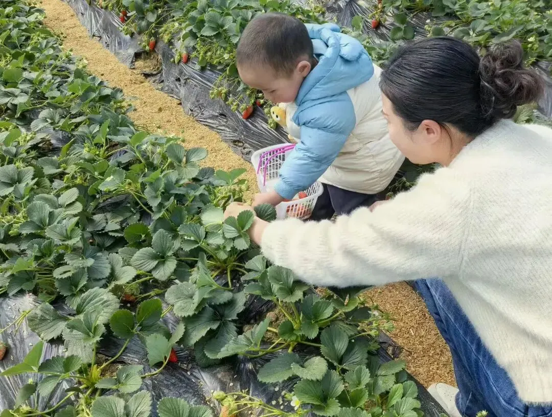 在旱坝大田园,“亲子+体验”模式深受家庭游客喜爱。草莓采摘园里热闹非凡,儿童游乐园、萌宠乐园前排起长队,无动力游乐设施、萌宠互动体验等项目,让孩子们尽情游玩,也带动了假日消费持续升温。