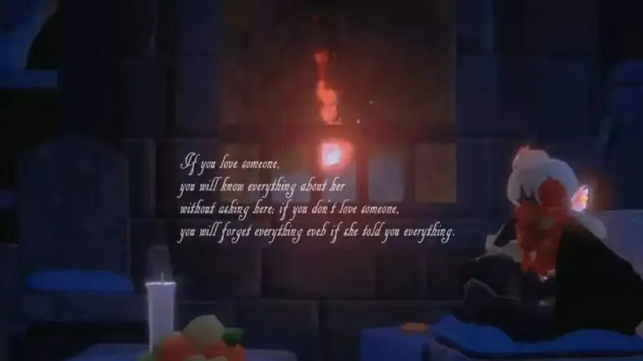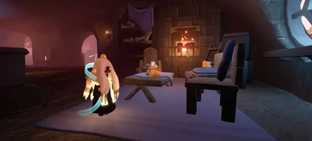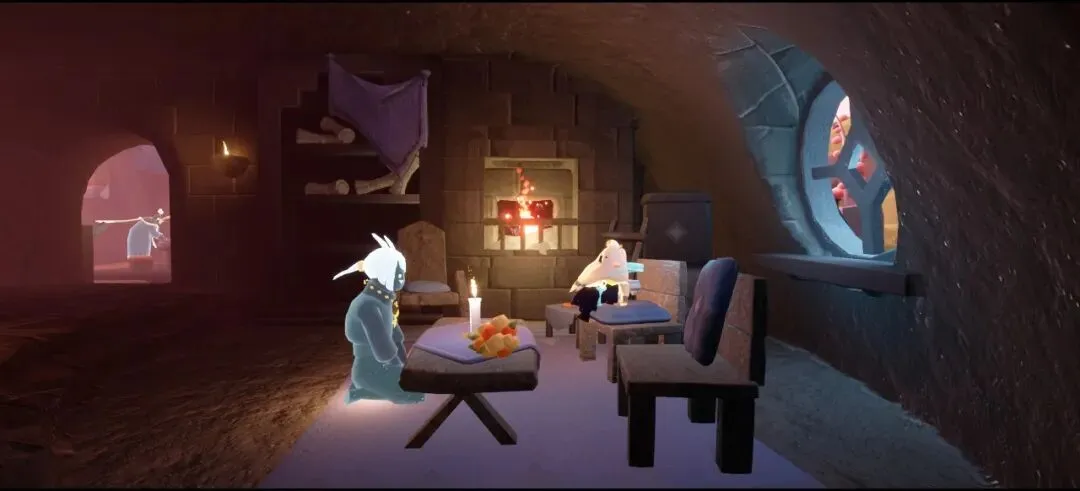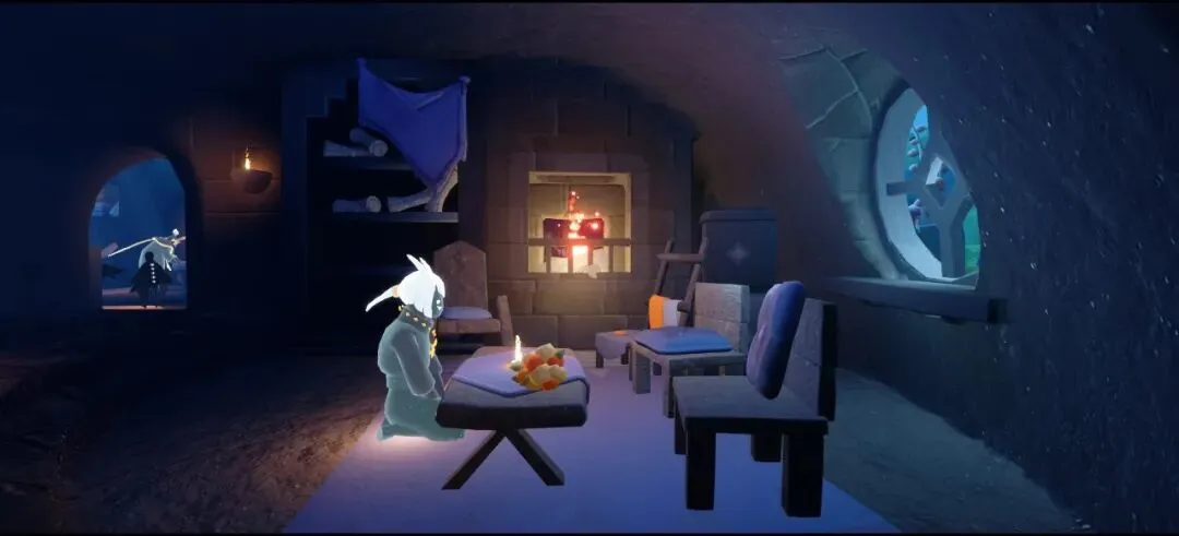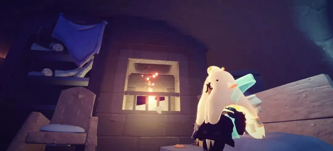 这里需要点火才能坐下(摁,也可以自己找方位坐but没必要 点火之后坐下会有白鸟来请安👍 然后会卡死镜头,如果想自由转镜头可以等蜡烛燃完,摁,燃烧完之后白鸟就会走回去了。