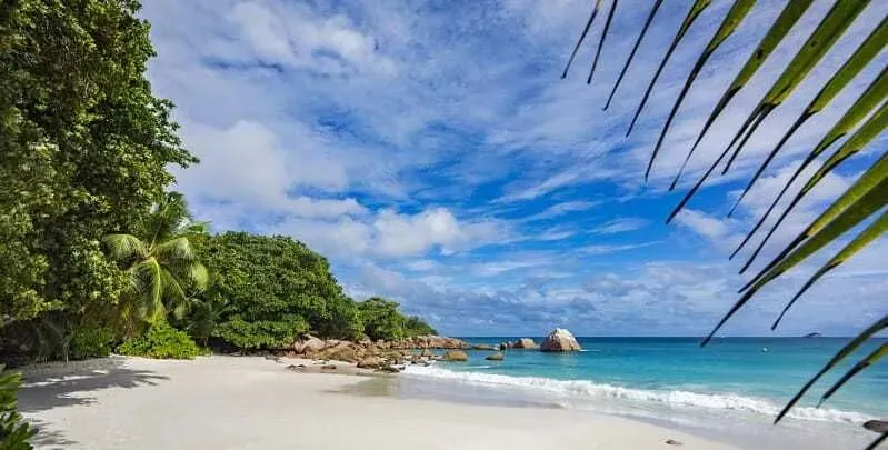 普卡海滩沙质较粗犷且坡度陡峭,与白沙滩形成对比,海水颜色呈现从绿色到深蓝的层次变化。无需门票。