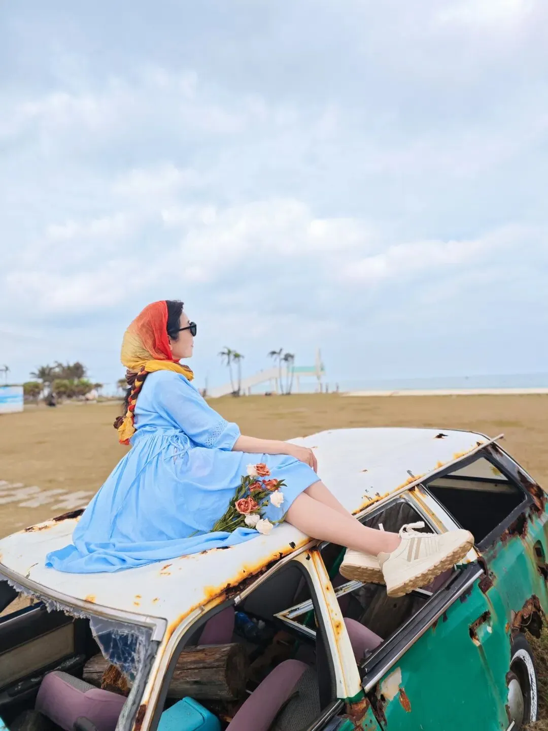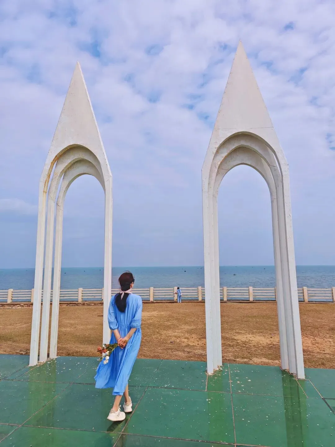 之所以能成为网红拍照打卡地,真应该感谢那一览无遗的海岸线作为背景。蓝天下,平静的大海和适宜度恰好的海风,吹起姑娘的裙摆,极易拍出文艺小清新的范。