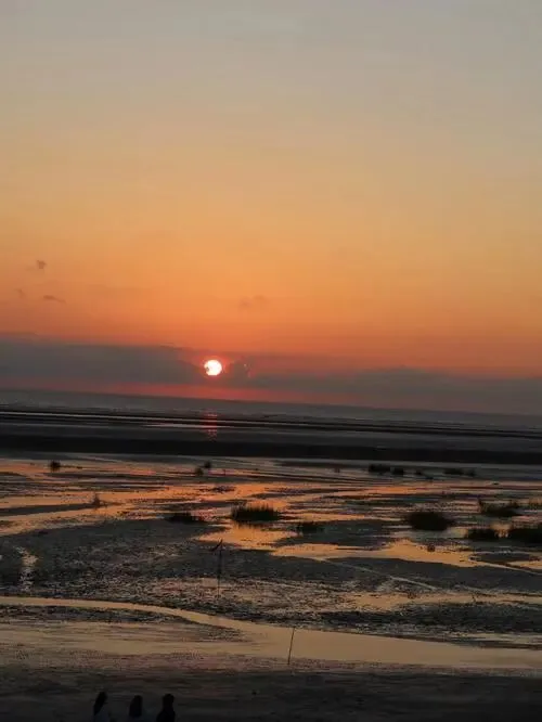 滩涂拾趣:黄金海滩地势平缓,退潮后滩涂裸露,可体验赶海之乐——挖文蛤、拾海贝,收获自然的馈赠。