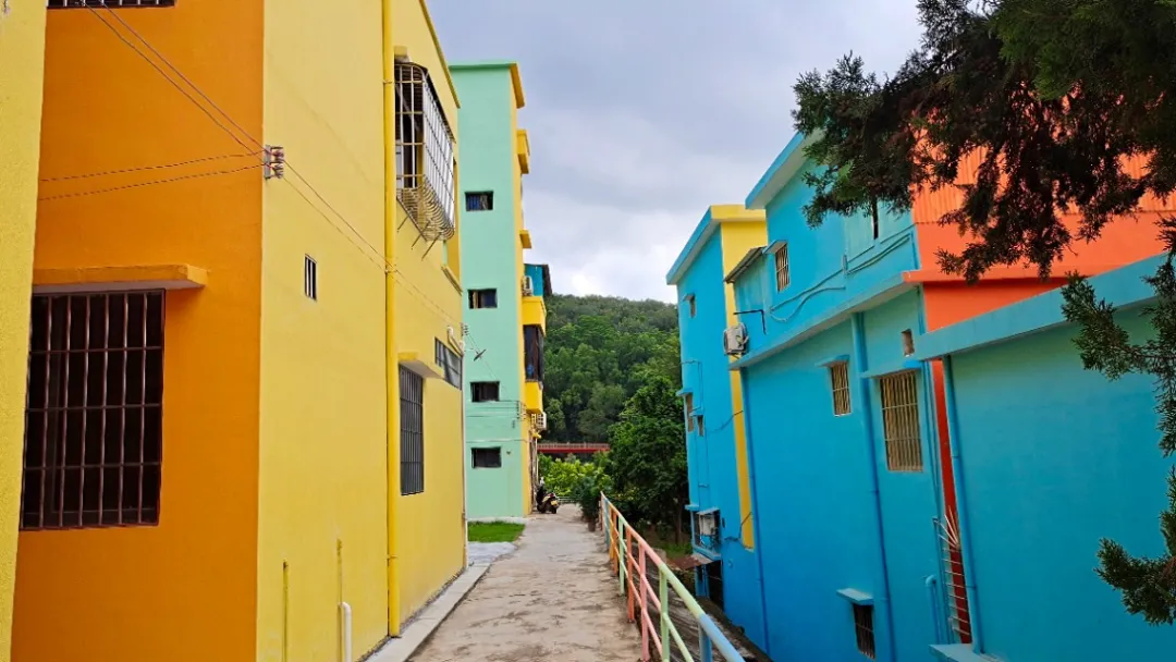 简介:彩虹村位于白水带体育公园旁的横坑村,这里的120多栋村屋仿佛被施了魔法,统一用黄、橙、天蓝、浅绿等迷人色彩的环保原料粉刷一新,瞬间化身为让人心醉神迷的童话世界。巷子里的墙体还有各种彩绘,充满了艺术氛围,非常适合拍照打卡。村内还有一些小店,售卖着特色的手工艺品和小吃,游客可以在这里一边欣赏美景,一边品尝美食。彩虹村被评为省级和市级文化和旅游特色村,成为了江海区的网红打卡地之一。