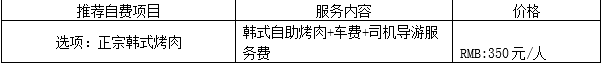 1. 韩国各地都有深厚特色的文化底蕴,以下推荐的自费项目都是韩国的精华所在。您可以 根据自己的喜好,自愿选择自费项目,相信韩国的自费活动会带给您不同的体验;