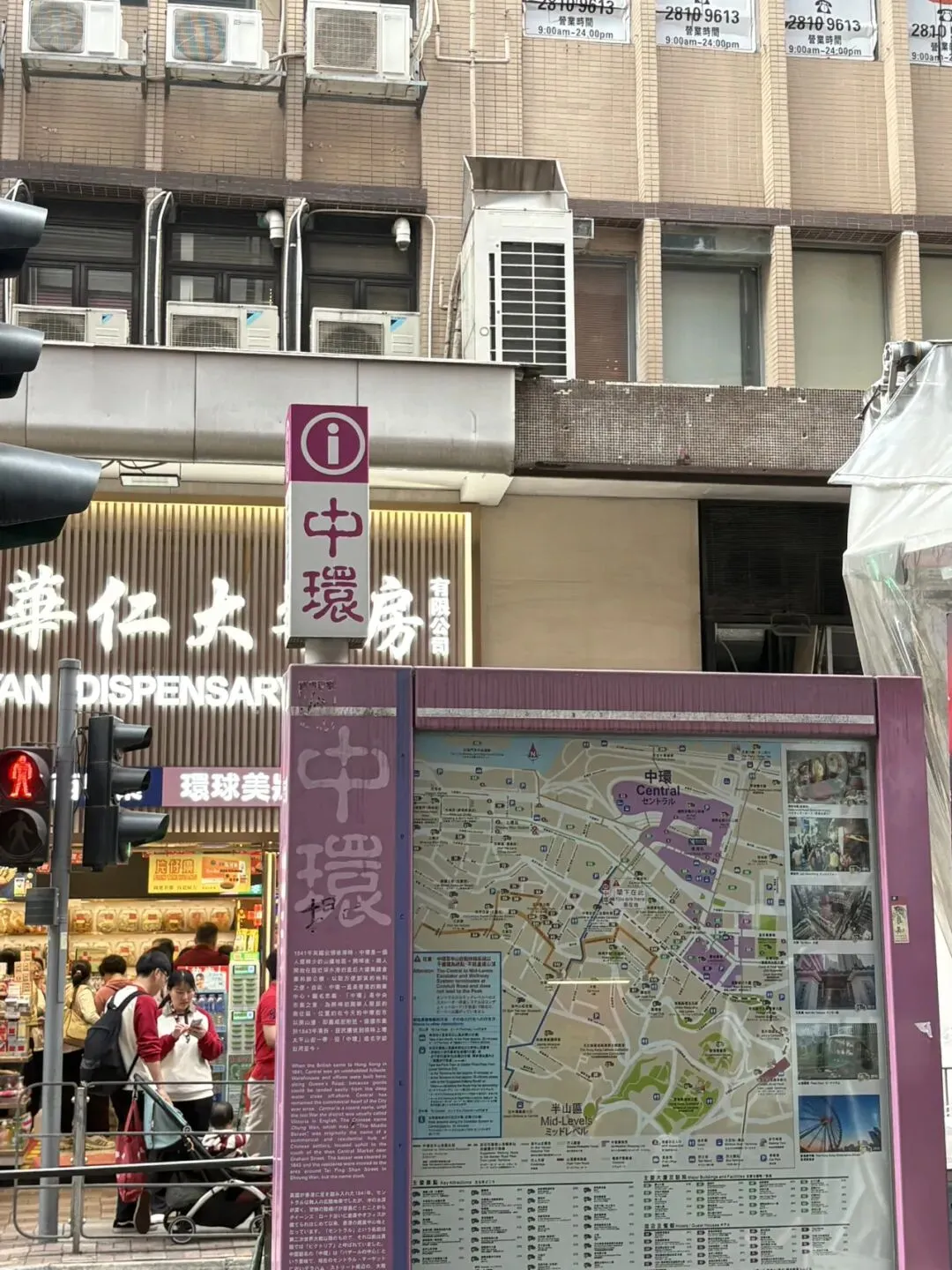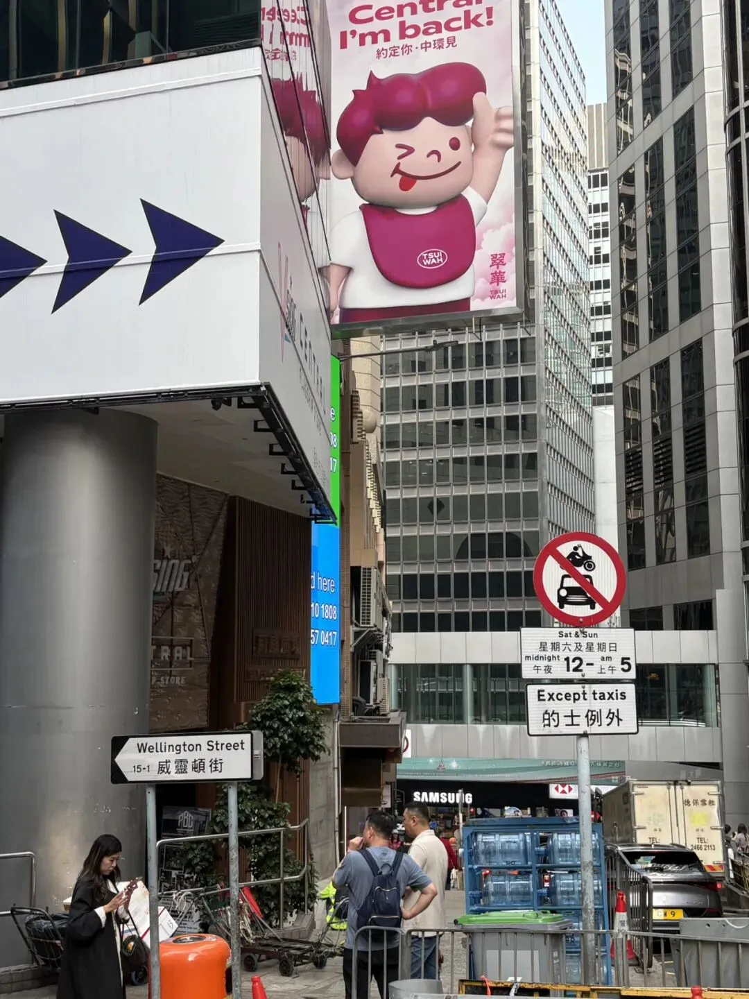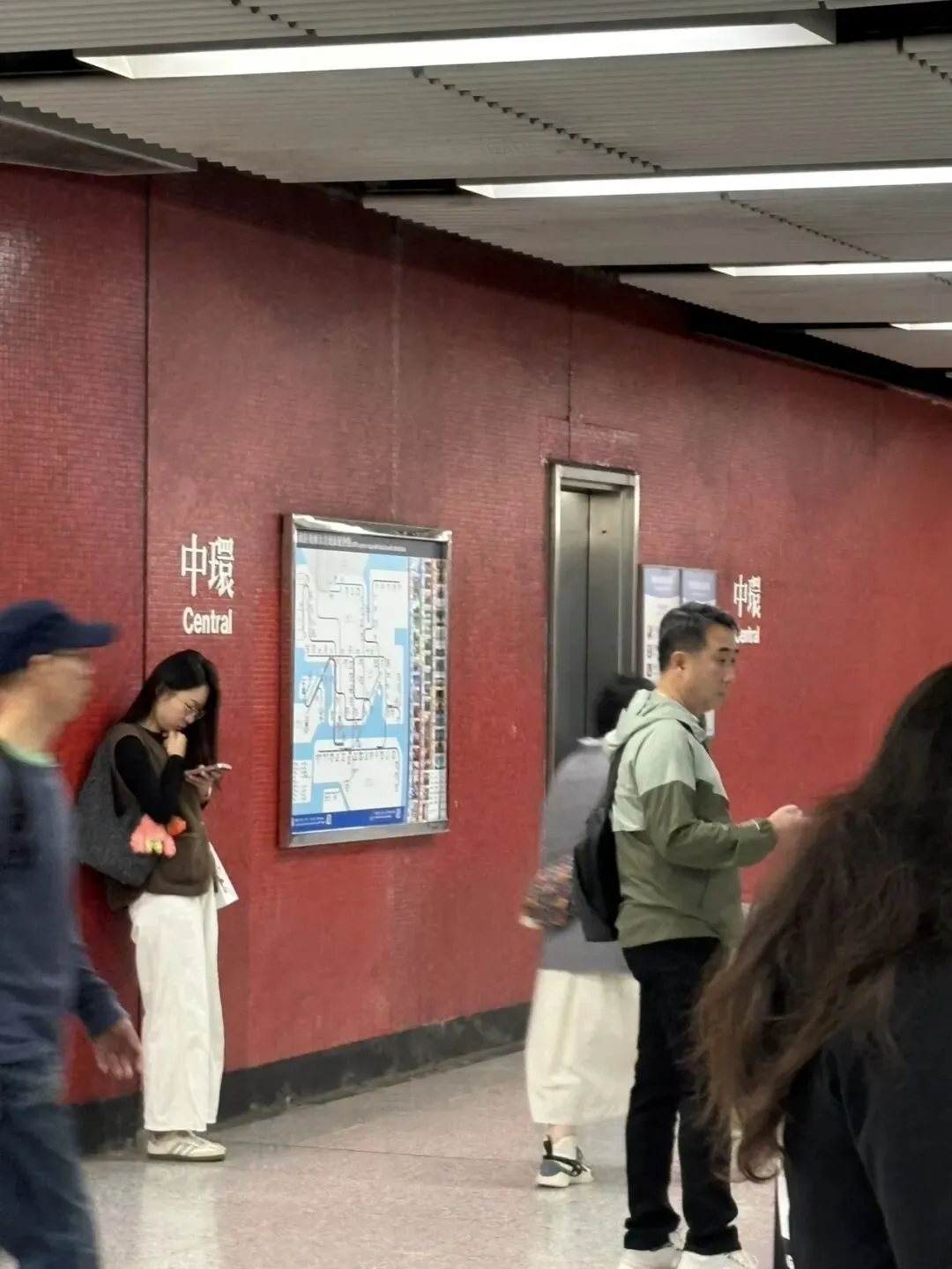 小小的两个字“中环”,但是很港风。香港地铁站大胆使用明亮色彩,站名规规矩矩写,有复古风。