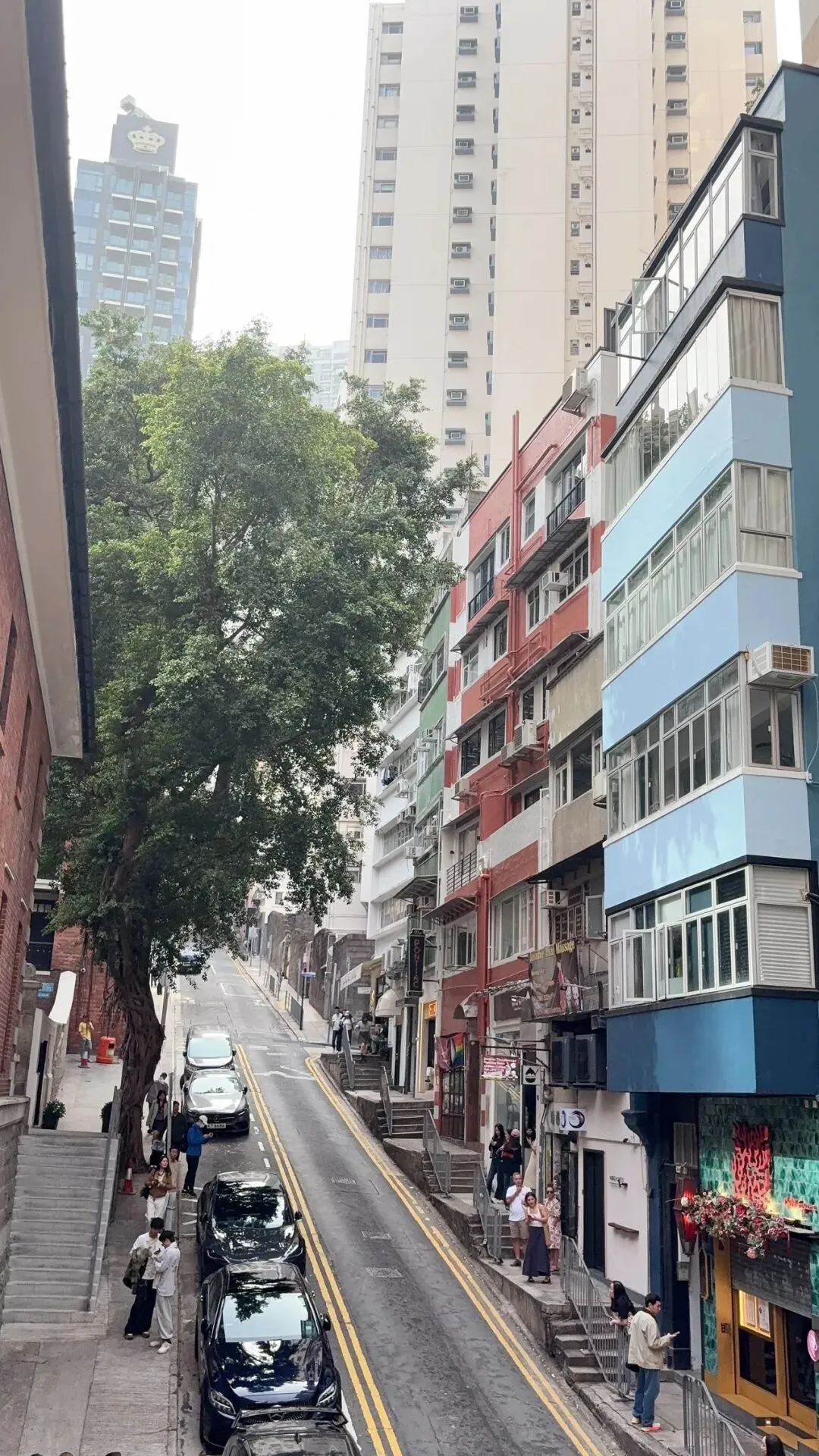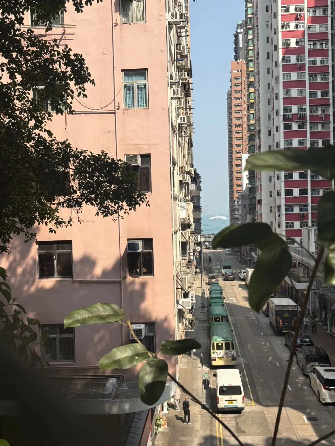 这个坚尼地城篮球场视角俯拍,是上个月演员李现的打卡路线。不时就可以拍到邮轮通过。