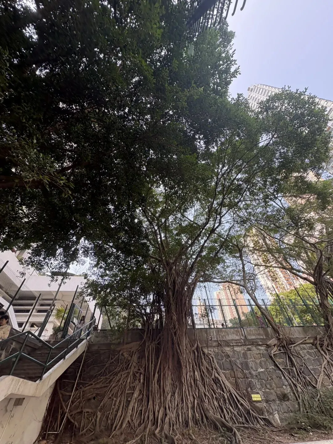 网红篮球场下面的树长得很神奇。盘根错节。