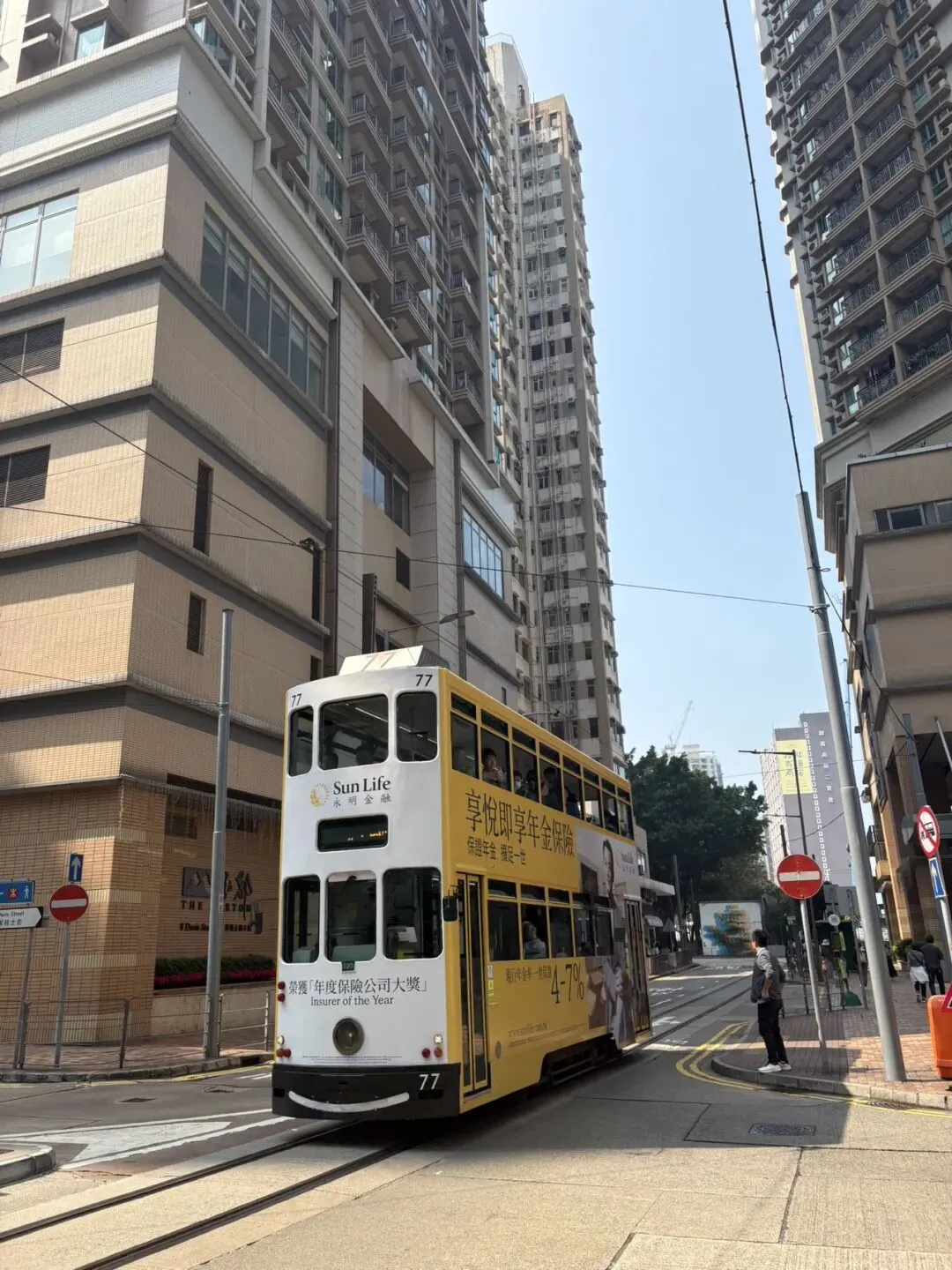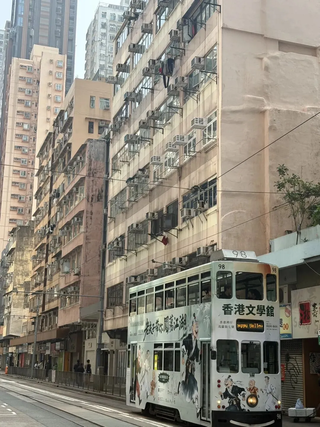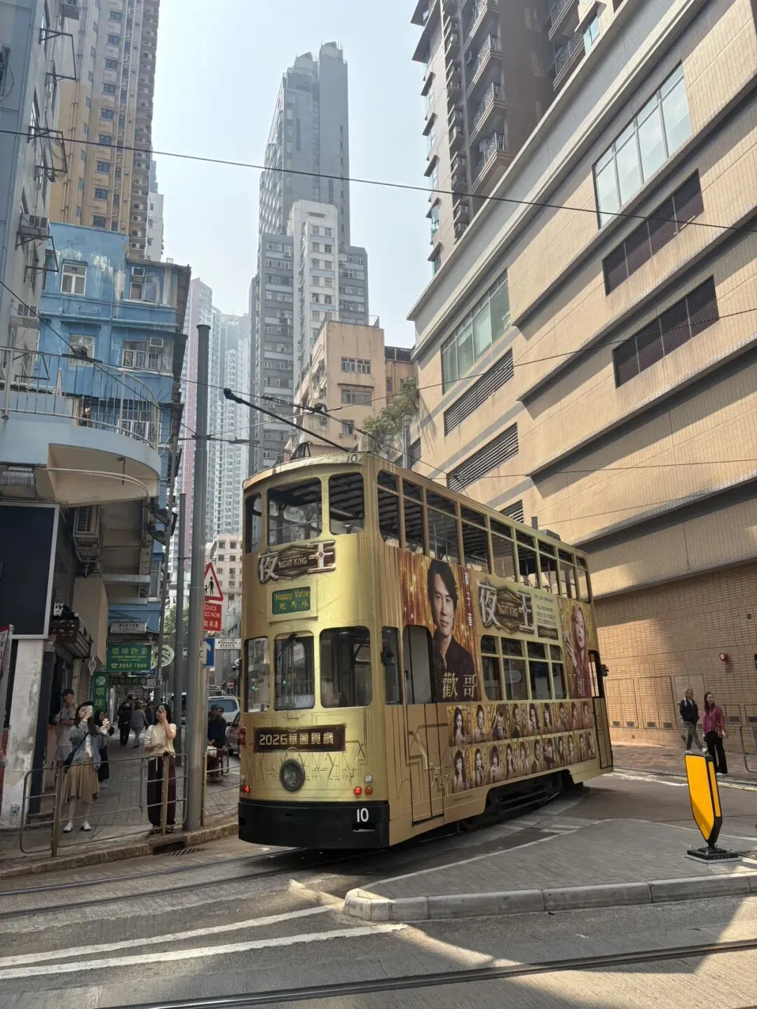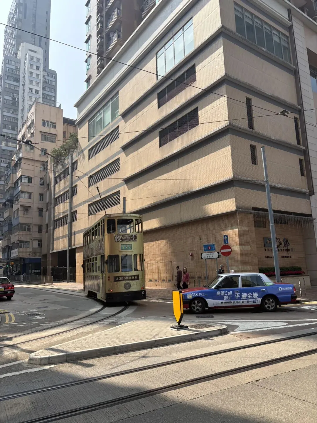 街头叮叮车,我们乘坐叮叮车去中环。