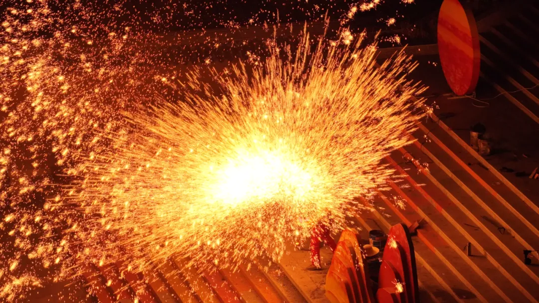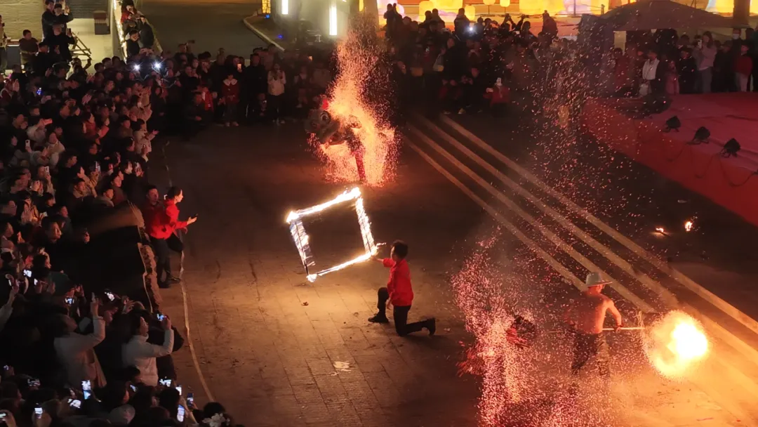 步入景区,处处张灯结彩、喜气洋洋,浓郁的三国古风与新春民俗氛围扑面而来。当夜幕降临,景区化身流光溢彩的梦幻世界,非遗打铁花表演震撼登场。千余度高温铁水被匠人奋力抛向空中,瞬间化作漫天金雨、星火奔腾,铁花飞溅如银河落九天,璀璨夺目、气势磅礴,金红交织的光雨划破夜空,洒落在祁山大地,每一次绽放都惊心动魄、每一幕景象都蔚为壮观,以最古朴、最热烈的方式点亮新春夜空,尽显非遗民俗的磅礴气势与独特魅力。