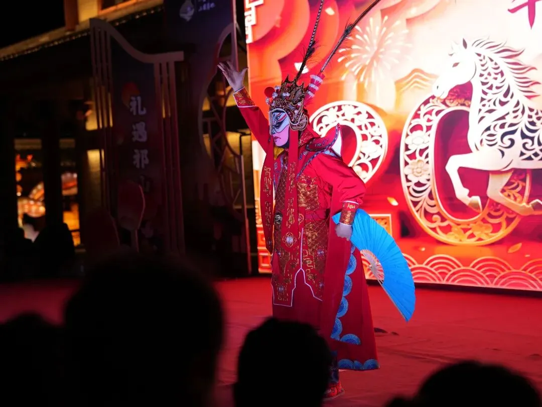 热闹非凡的社火表演成为新春景区一道亮丽风景线:威风凛凛的舞龙腾跃盘旋、首尾相顾,金色龙鳞在阳光下熠熠生辉;雄狮腾挪跳跃、摇头摆尾,时而登高、时而献瑞,引得游客阵阵喝彩;跑马、旱船穿插其间,表演者身着喜庆服饰,步伐轻快、诙谐生动,锣鼓声、欢笑声、喝彩声汇成一片,将新春的喜庆氛围推向顶点。