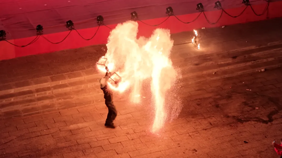 与之呼应的川剧变脸与喷火表演精彩绝伦,演员脸谱瞬息万变、神秘莫测,喷火绝技火舌冲天、气势如虹,一招一式尽显传统技艺的精湛;全系列火秀、火符火舞、火焰刀轮番上演,火光与光影交织,带来震撼视听盛宴。