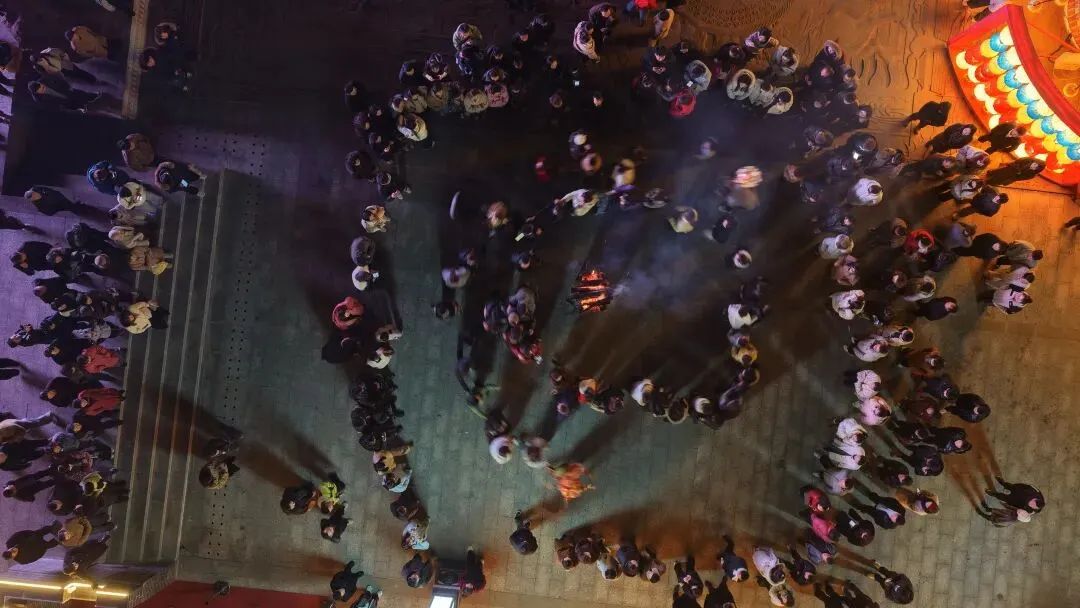 广场之上,篝火晚会热情开场,熊熊篝火腾空而起,温暖的光芒照亮一张张笑脸,各地游客手拉手围着篝火载歌载舞,在欢声笑语中共贺新春。当璀璨烟花秀腾空绽放,五彩斑斓的焰火在夜空勾勒出绝美画卷,现场欢呼声、惊叹声不绝于耳。