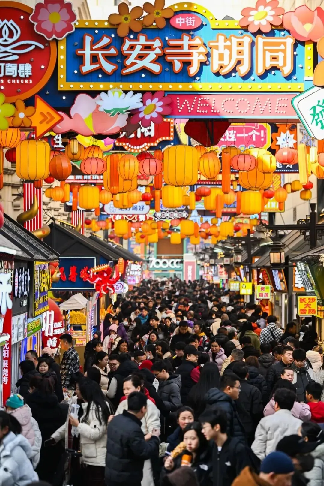 景区与人气商圈热度居高不下。老北市作为沈阳年俗地标,春节假期日均迎客超10万人次,民俗氛围浓厚,成为市民游客首选;中街步行街热闹非凡,头条胡同仅春节前六天累计客流量就突破30万人次,有效带动整个中街商圈消费提升。