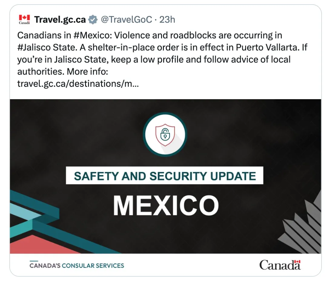 墨西哥暴乱升级,旅游区也沦陷!加拿大外长:超2.6万加拿大人在墨西哥需注意安全