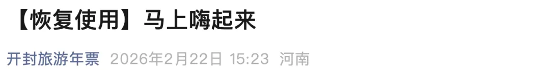 2026年2月24日起,郑开旅游年票全面恢复使用。