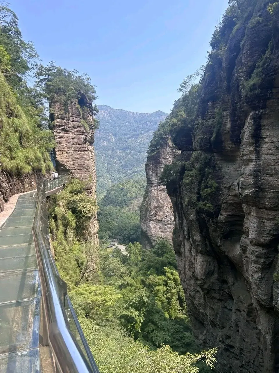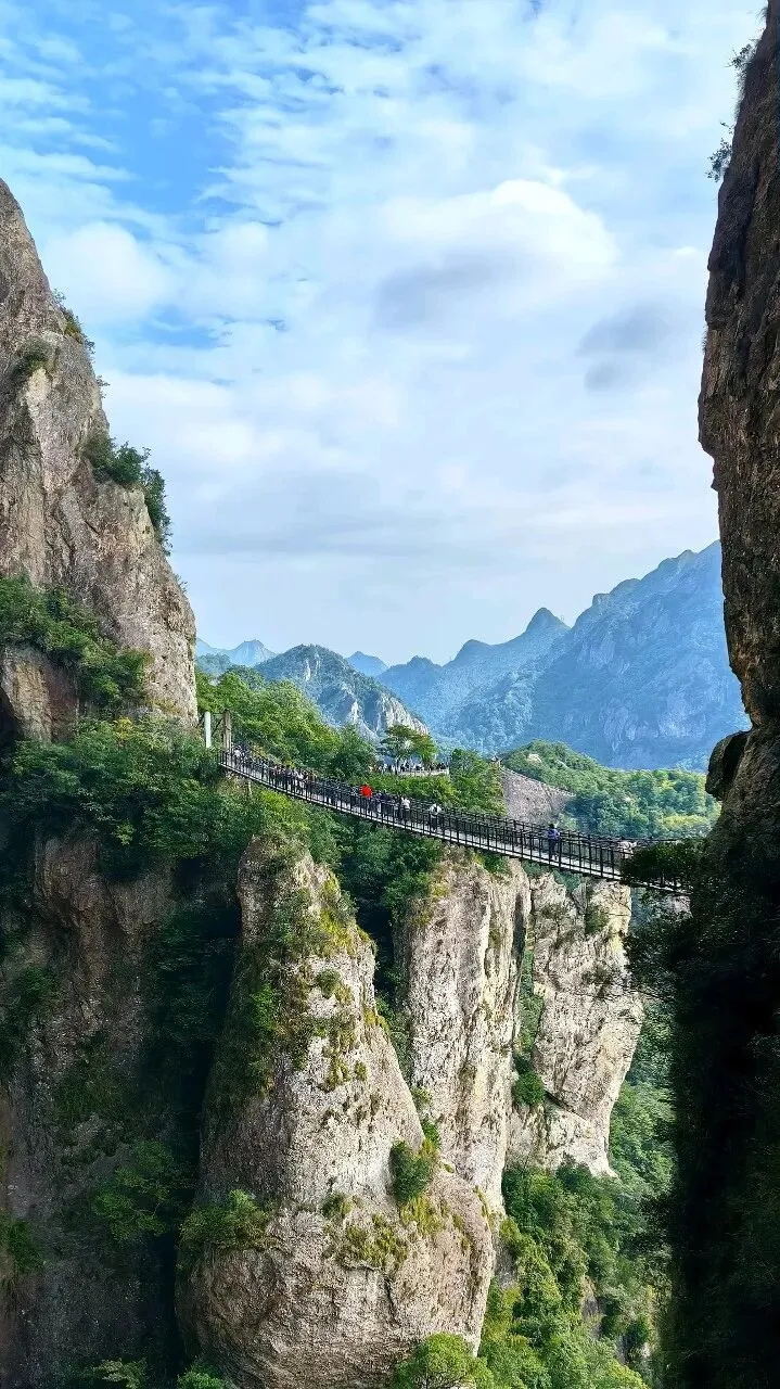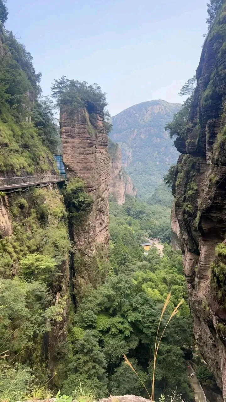 中午:前往方洞景区,这是雁荡山的小众秘境,以险峻的悬崖栈道和奇特的喀斯特地貌闻名。从绝壁中开凿出来的游道长约2公里,宽近2米,还有高192米的天桥,脚下是万丈深渊,远眺云雾飘渺,聚聚散散,仿佛置身仙阙。景区内还有观音像、透天洞等天然奇石景观,沿悬崖栈道漫步,可俯瞰雁荡山的层峦叠嶂与田园村落,视野开阔,下午返甬