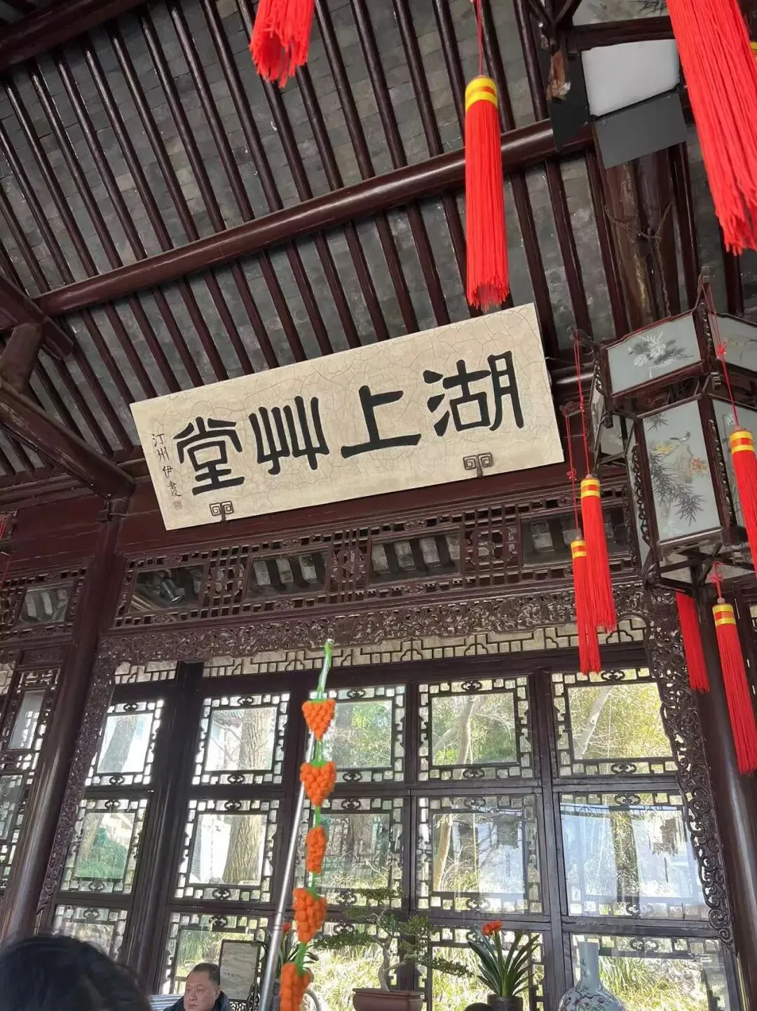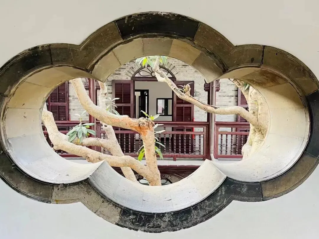 长廊上的花窗被称为“天下第一窗”,造型独特,如画框一般,定格了窗外之景。