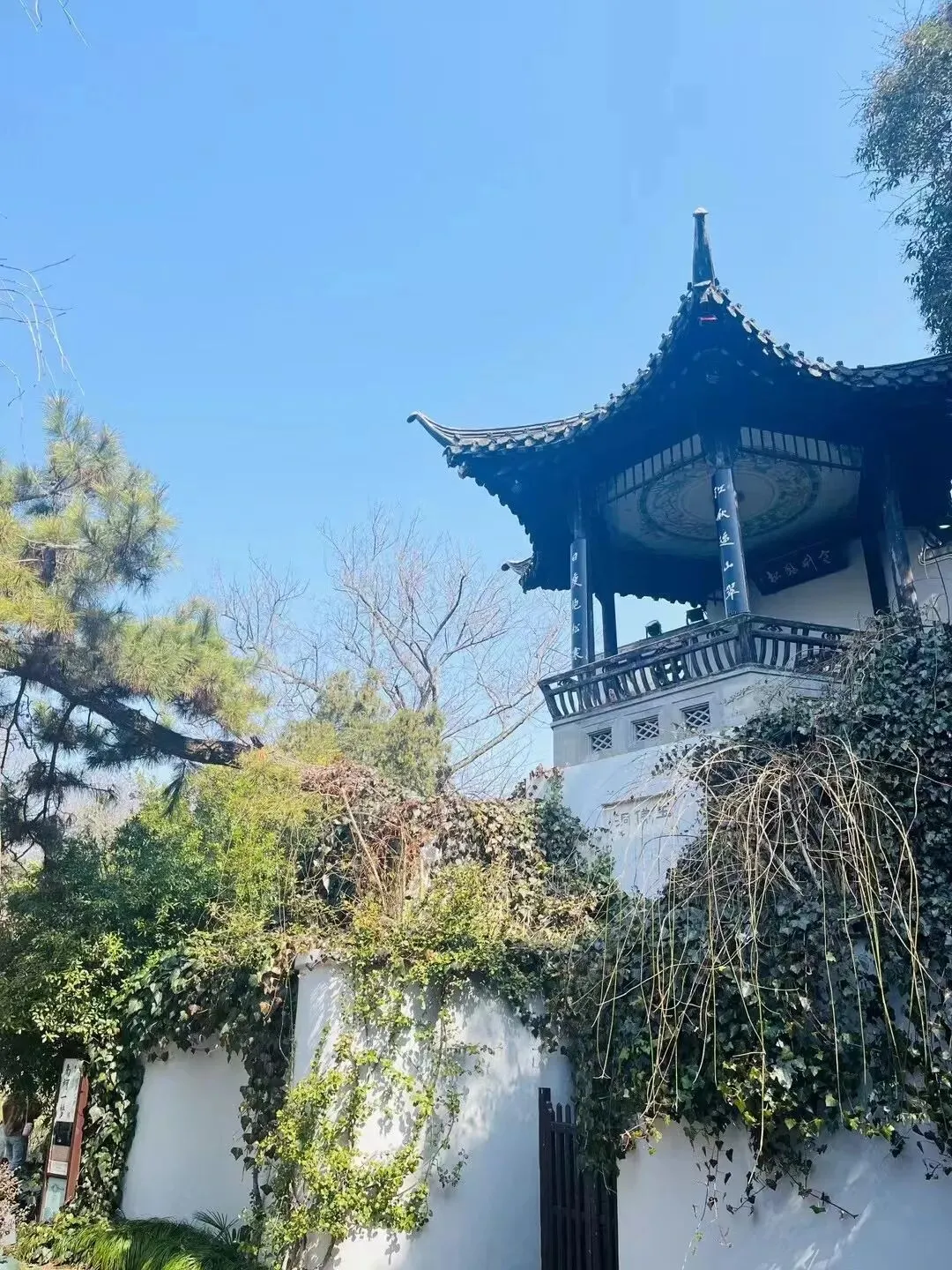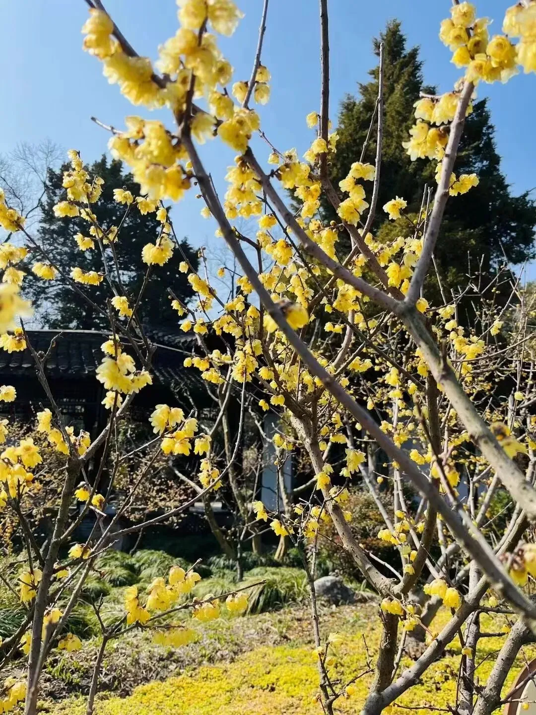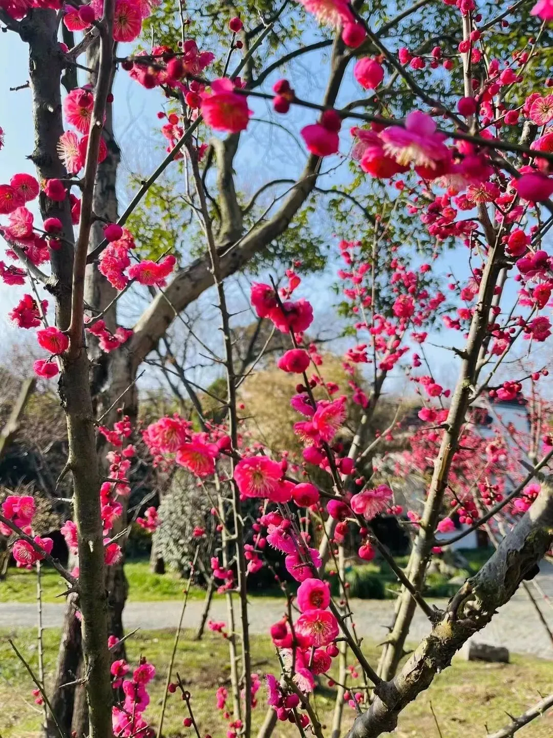 瘦西湖有很多种植梅花的景点,湖畔多庭院,小桥流水的院落间,花枝沿着墙攀爬伸展,闲闲地开一朵两朵。