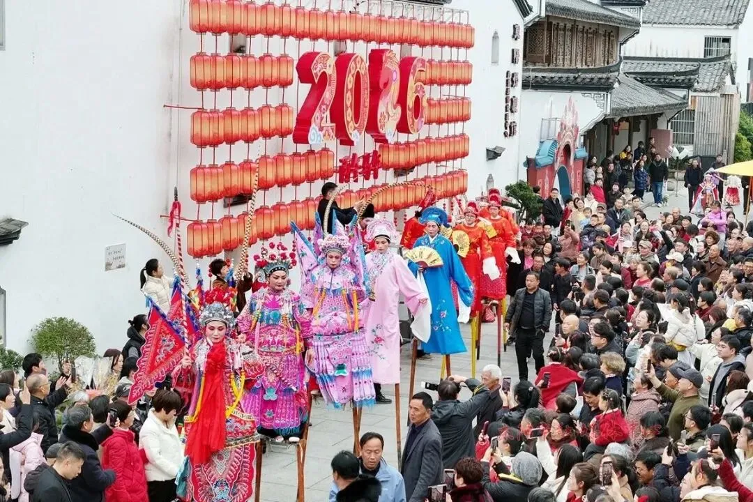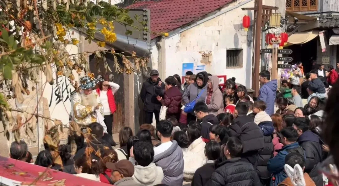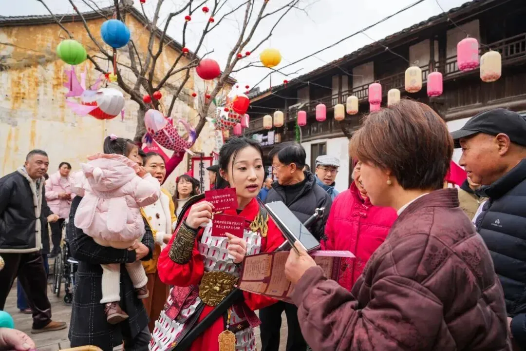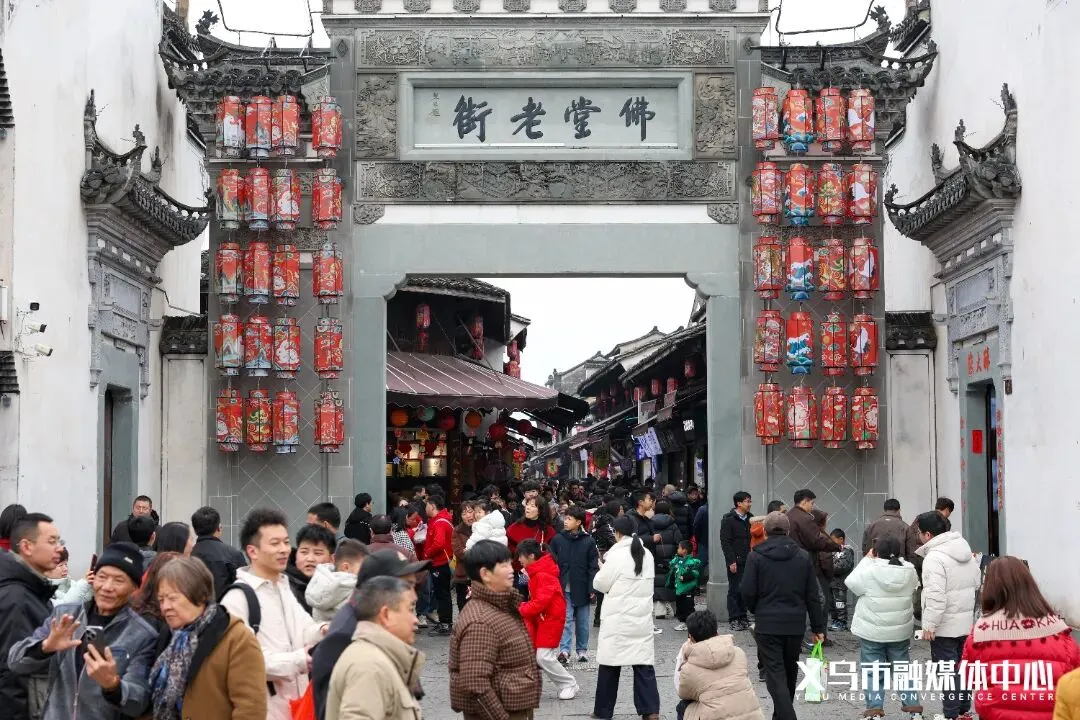 佛堂古镇成为游客争相前往的新晋网红地。春晚同款美陈、特色花灯、古风花灯巡游会、新年快闪屋檐音乐会、非遗戏台花式演绎……全力打造有温度、可参与、能共鸣的新春文旅空间,丰富多彩的活动吸引了全国游客来打卡。