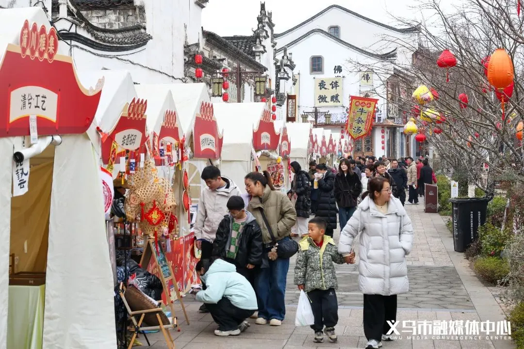 佛堂老街、蒲川水街、浮桥上游人如织。市民游客循着春晚“印记”逛街赏景、拍照打卡,在特色年俗与潮流体验中解锁新春喜悦,感受别样的义乌年味。