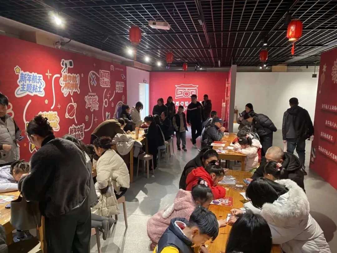 不少家长带着孩子排队领取集印任务卡,参与各项新春活动,穿梭在古街各处打卡点之间。