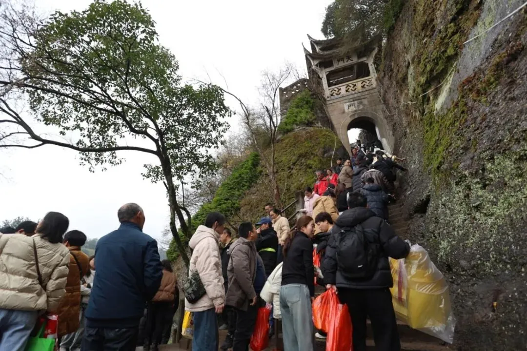 祈福是方岩春节重头戏,许多人春节假期来方岩登高纳福,许下马年心愿。岩下老街还开展了十八蝴蝶、九狮图等非遗表演。