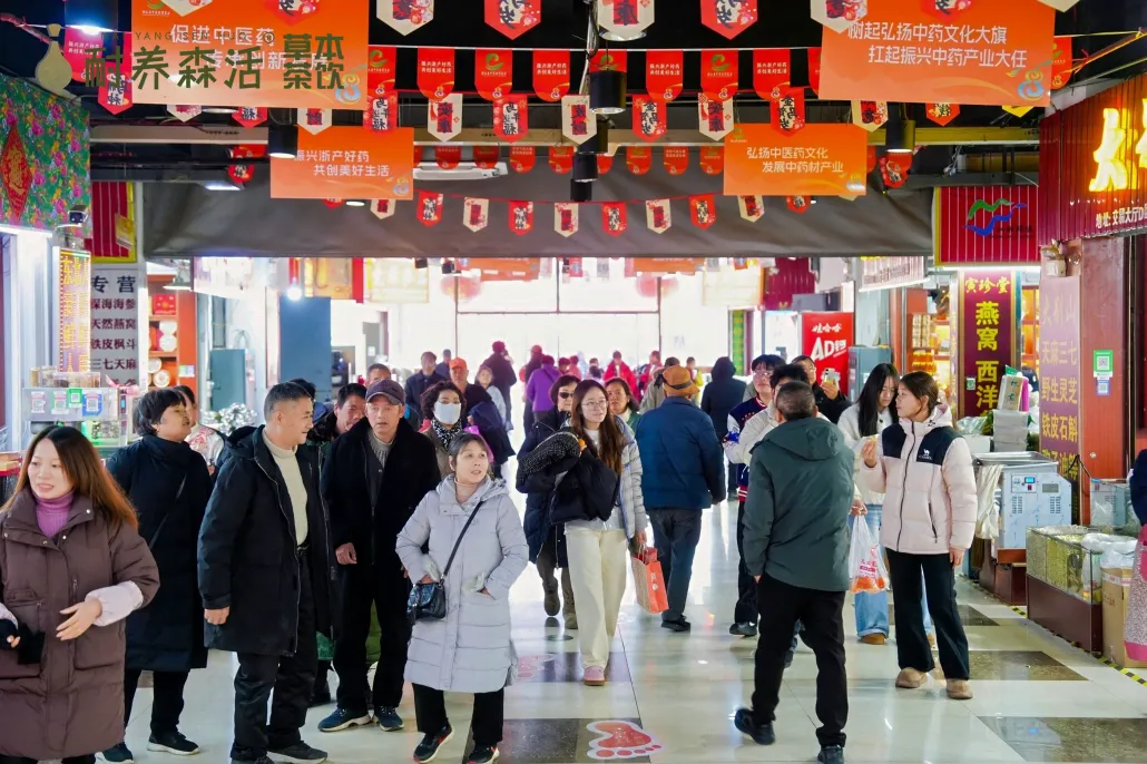 景区内人流如织、氛围热烈,这里甄选本地道地药材与匠心优品,无论是送给长辈的滋补佳品,还是赠予朋友的草本香囊,这里都能满足你的需求。