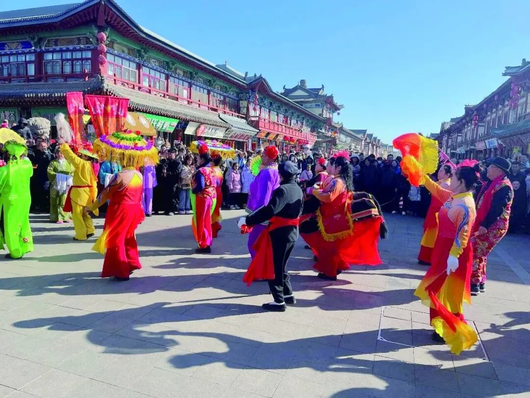 景区精心推出10余项非遗民俗活动,实现文旅深度融合。木塔牌楼前,应县青年耍孩儿剧团每日上演五六场《朱棣赐匾》情景剧,演员以独特“咳咳腔”演绎明成祖题写匾额的故事,深受游客喜爱。景区北侧的“古塔寻味糕暖双节”现场,热气腾腾的应县特色油炸糕吸引游客排队品尝,传递别样年味。