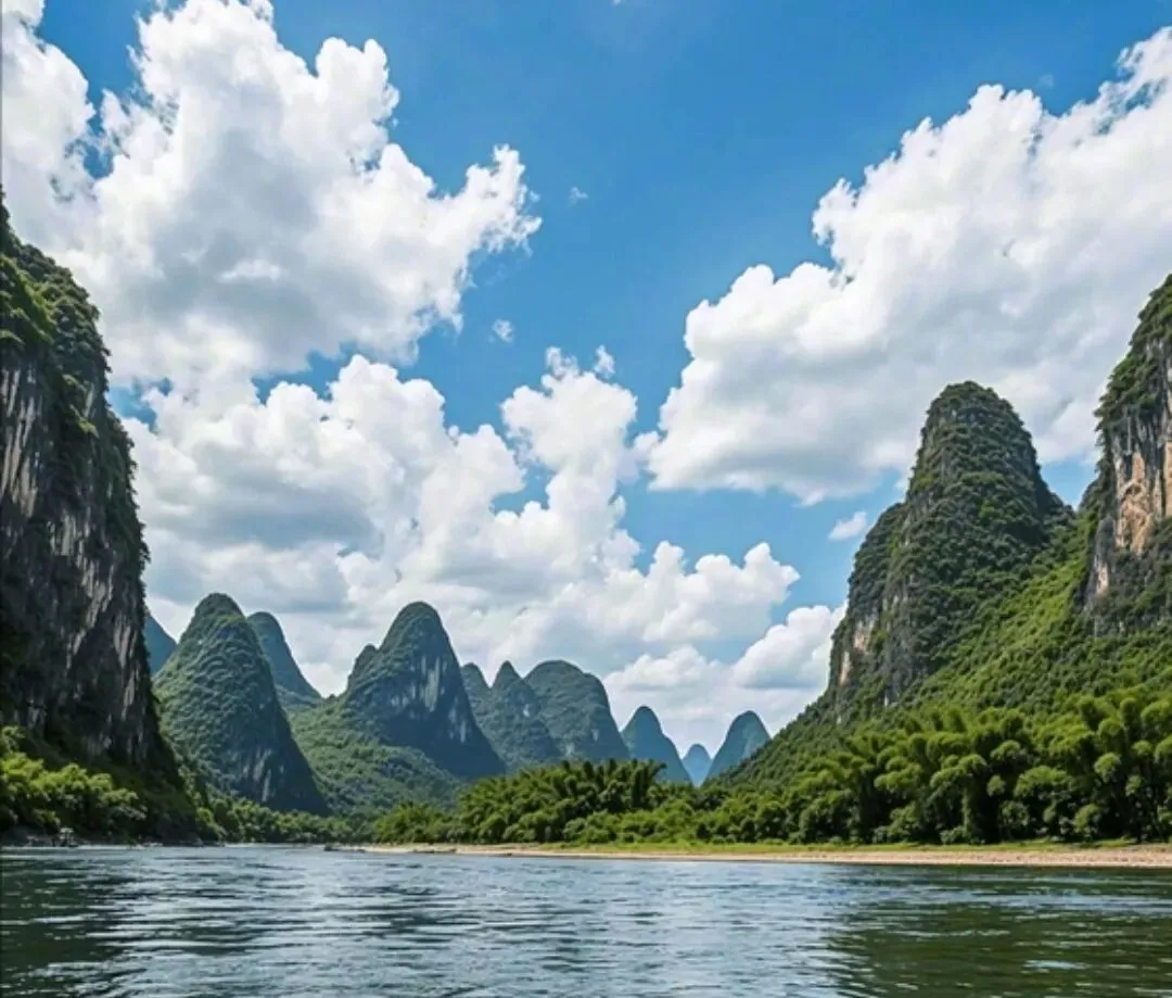 漓江的美,是一种温婉如玉的诗意。竹筏悠悠,青山如黛,碧水如镜,两岸风光旖旎。那些形态各异的山峰,像是大自然精心雕琢的艺术品,每一座都有着动人的传说。
