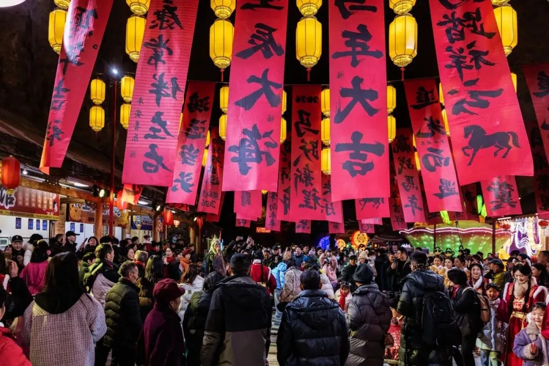 2月10日至11日,2026年全国“我们的节日·春节”主题文化活动启动仪式在利川举行,以此为核心,全市打造了一系列特色文旅活动。今年春节假期,利川核心景区表现十分抢眼。腾龙洞景区作为核心文旅地标,成为假期游客打卡首选之地,联合自贡文旅打造非遗灯会,布置骏马踏春、西兰女神、鱼跃龙门等20余组大型灯组,同步推出龙脉情缘、飞天神女等20多个互动节目。