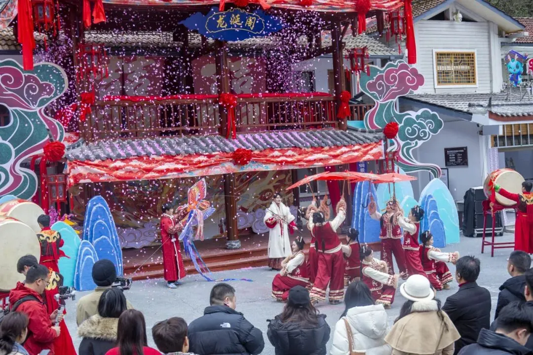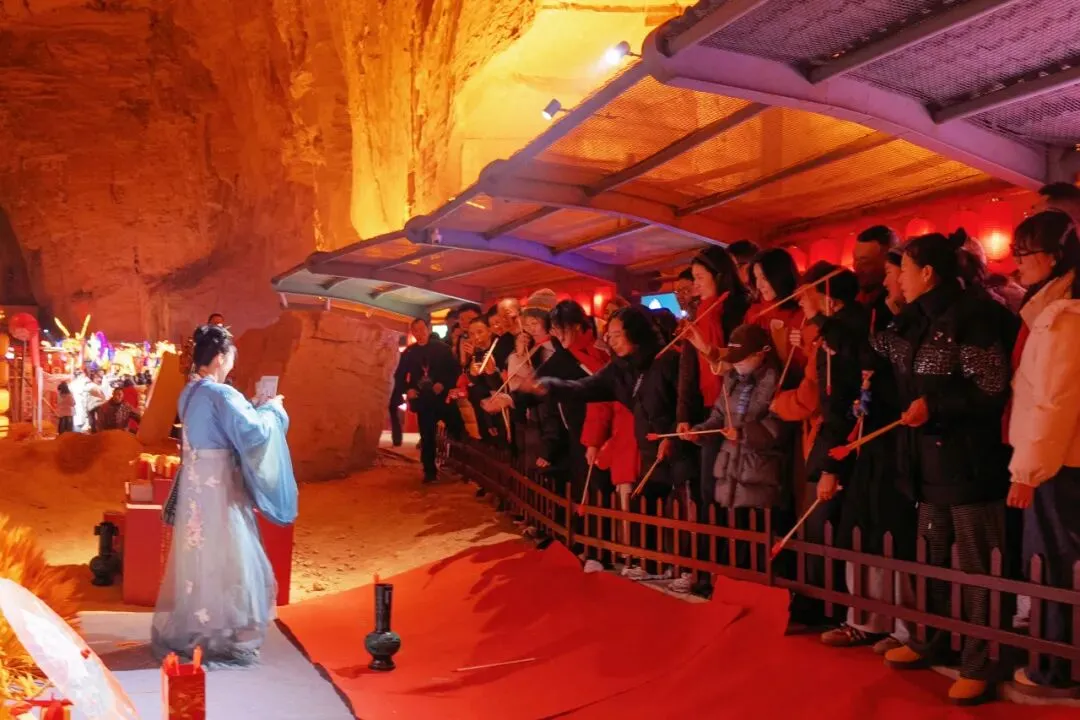 腾龙洞景区品牌策划部总监张芙蓉介绍,截至正月初六,景区入园人数超4万,营收突破500万元,同比分别增长68%和38%。