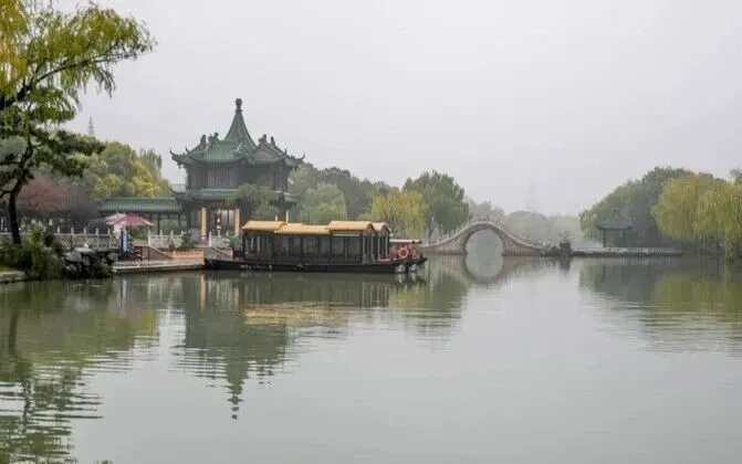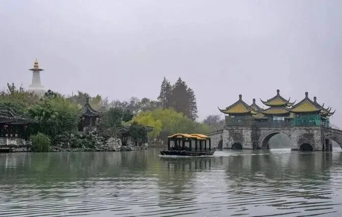 窈窕曲折的一湖碧水,串起了二十四桥,五亭桥,钓鱼台,白塔,熙春台,天气晴朗时,非常适合泛舟湖上,若是天阴落雨时分,也有水墨江南的韵味在。
