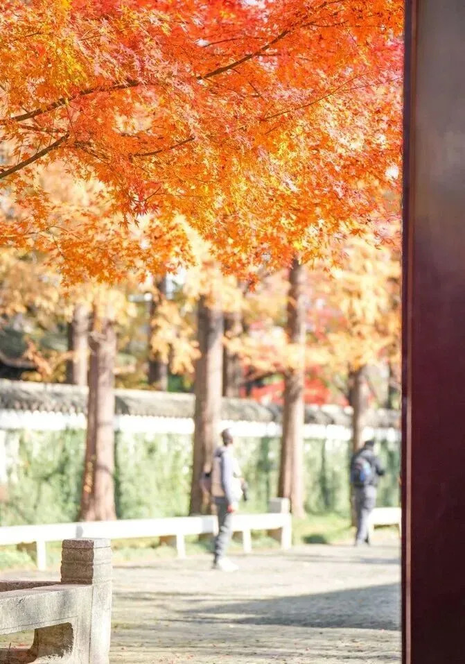 深秋,香樟,红枫,银杏,色彩斑斓,引游人驻足。