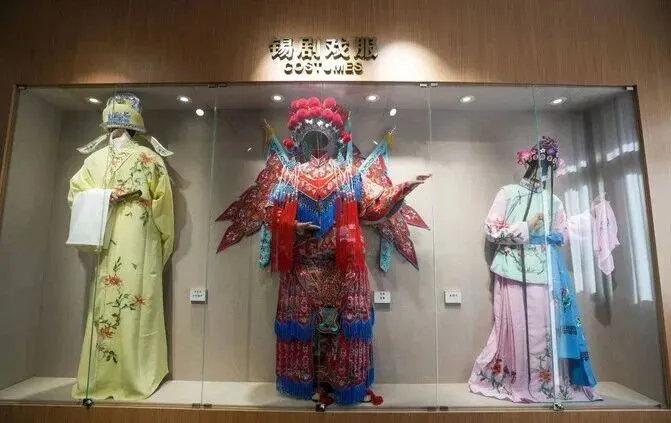 博物馆里有文字,图片,实物等各种关于锡剧的资料,台阶上是锡剧的历年大事记,还有票友来这票戏。