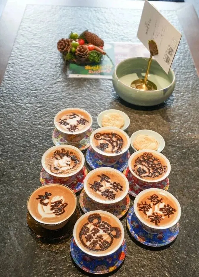 旁边的咖啡馆拉花坐得很有特色,可以写生旦净末丑哦,蛋糕也好吃,文创绝美。