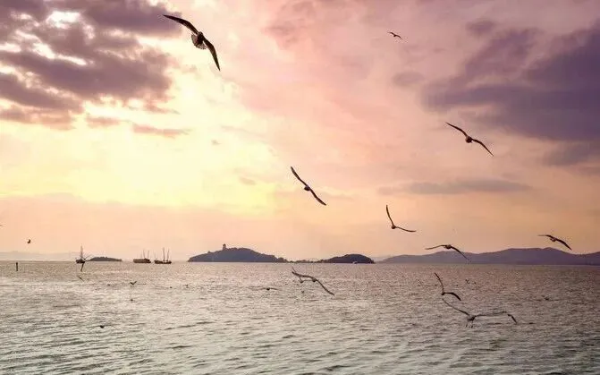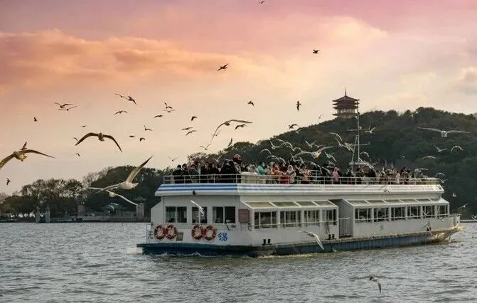 坐船15分钟一班上三山仙岛,红嘴鸥会跟船飞,非常壮观。