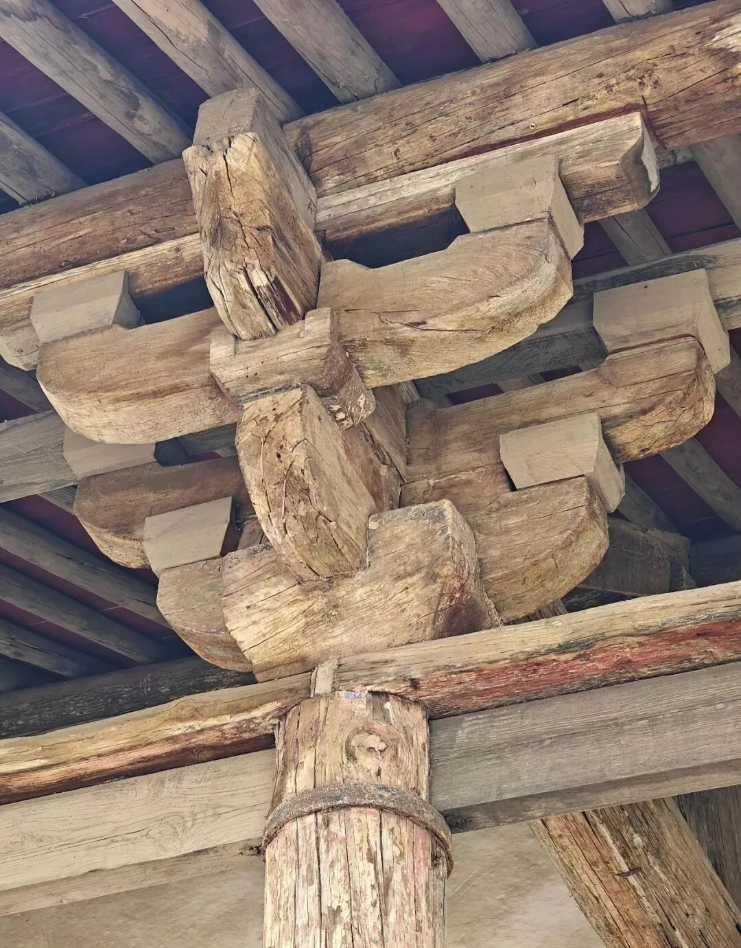 3. 元代:斗拱尺寸缩小,但结构更灵活。窦大夫祠(元代)的斗拱简洁实用,与粗犷的梁柱形成对比。