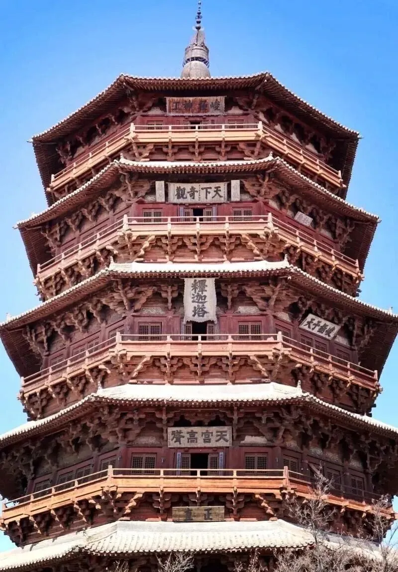 - 应县木塔(辽代):纯木结构无钉子,塔身倾斜但千年不倒,观察每层斗拱的承重变化。