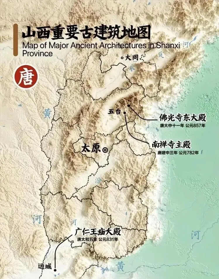 1. 唐代专线:五台山南禅寺→佛光寺→太原窦大夫祠(对比唐、元)。
